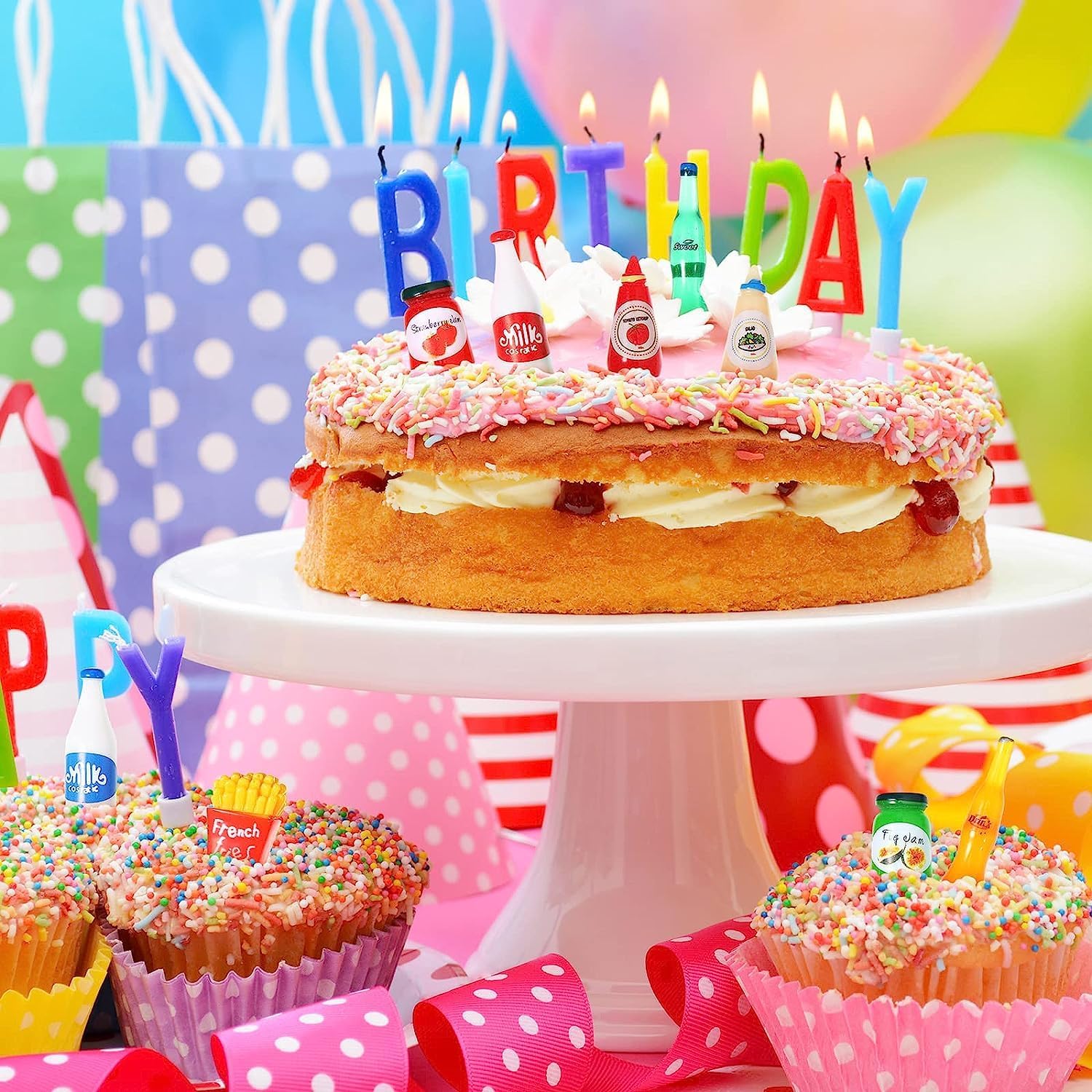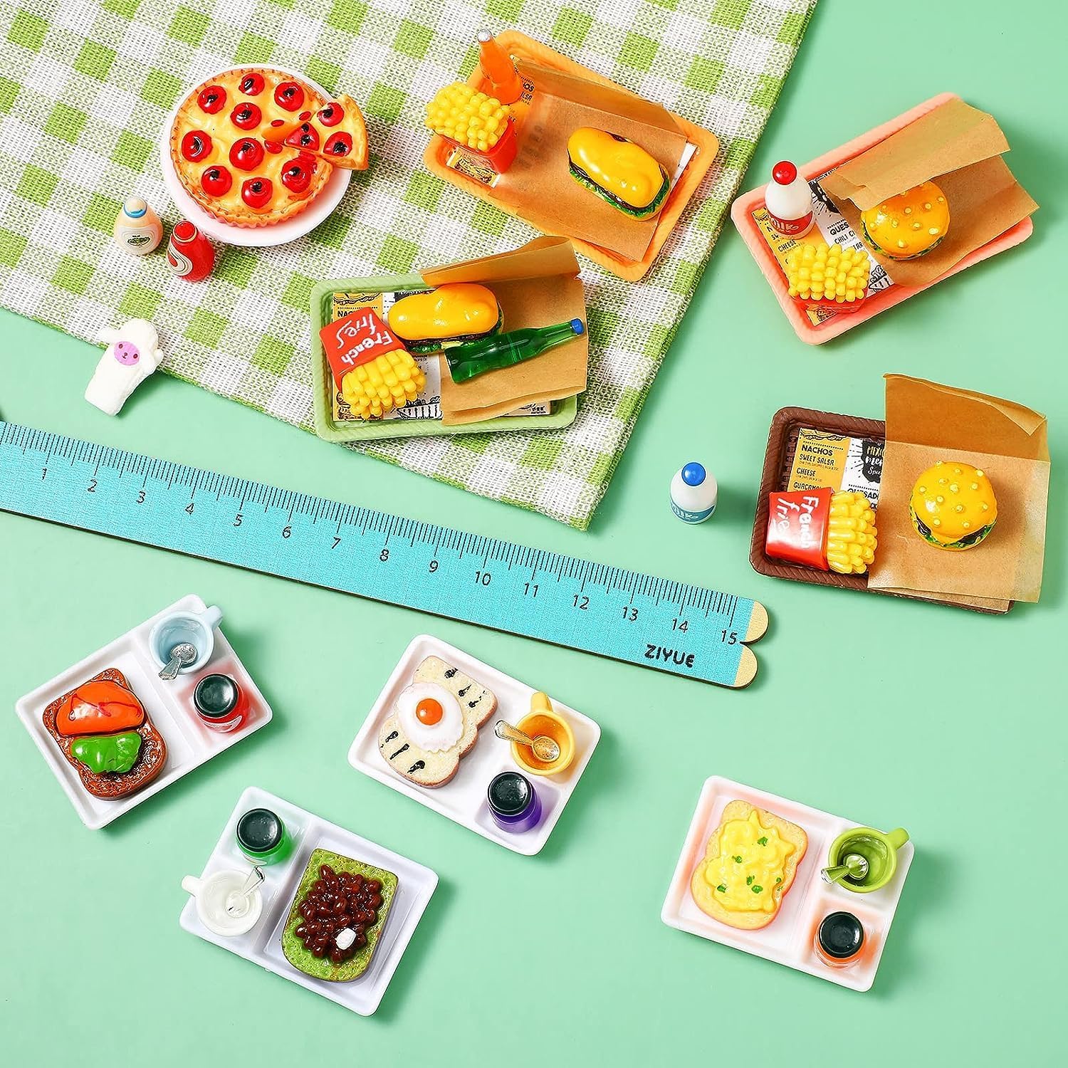 🍭【Set di Cibo e Bevande Miniatura】Il nostro Accessori Casa delle Bambole include: 2 mini hamburger, 2 mini hot dog, 4 involucri, 4 giornali, 4 bevande, 4 patatine fritte, 8 vassoi, 4 panini, 6 barattoli di marmellata, 4 tazze, 4 cucchiai, 2 pizze, 1 guanto e 1 piatto – scelta perfetta per decorare la vostra casa delle bambole. 🧃 【Materiale di Alta Qualità】Questo Cibo e Bevande Miniatura è realizzato in resina e plastica di alta qualità, sicuro e durevole, dai colori vivaci, non facile da danneggiare o sbiadire, può essere utilizzato a lungo, aggiungerà più vitalità alla tua casa delle bambole. 🍬 【Effetti Realistici delle Dcene di Vita】Questi Mini Cibo sono di piccole dimensioni e adatti per case delle bambole in scala 1:12 Hanno trame naturali e forme realistiche e sembrano molto attraenti. Puoi usare la tua immaginazione per progettare e decorare la casa delle bambole. 🍹【Decorazione Multifunzionale】È una decorazione perfetta per le case delle bambole, adatta per decorare le stanze dei bambini, le vetrine dei negozi, le cucine in miniatura, le panetterie in miniatura e altri luoghi, per giochi a tema come la decorazione della casa delle bambole, la cucina in miniatura e il gioco di ruolo della casa delle bambole. 🎁 【Regalo Ideale】Ques Cibo in Miniatura per bambole saranno un regalo felice, adatto a Natale, compleanni, Halloween e altre festività. Saranno regali creativi ideali per la tua famiglia, i bambini o gli amici che amano il fai-da-te.
