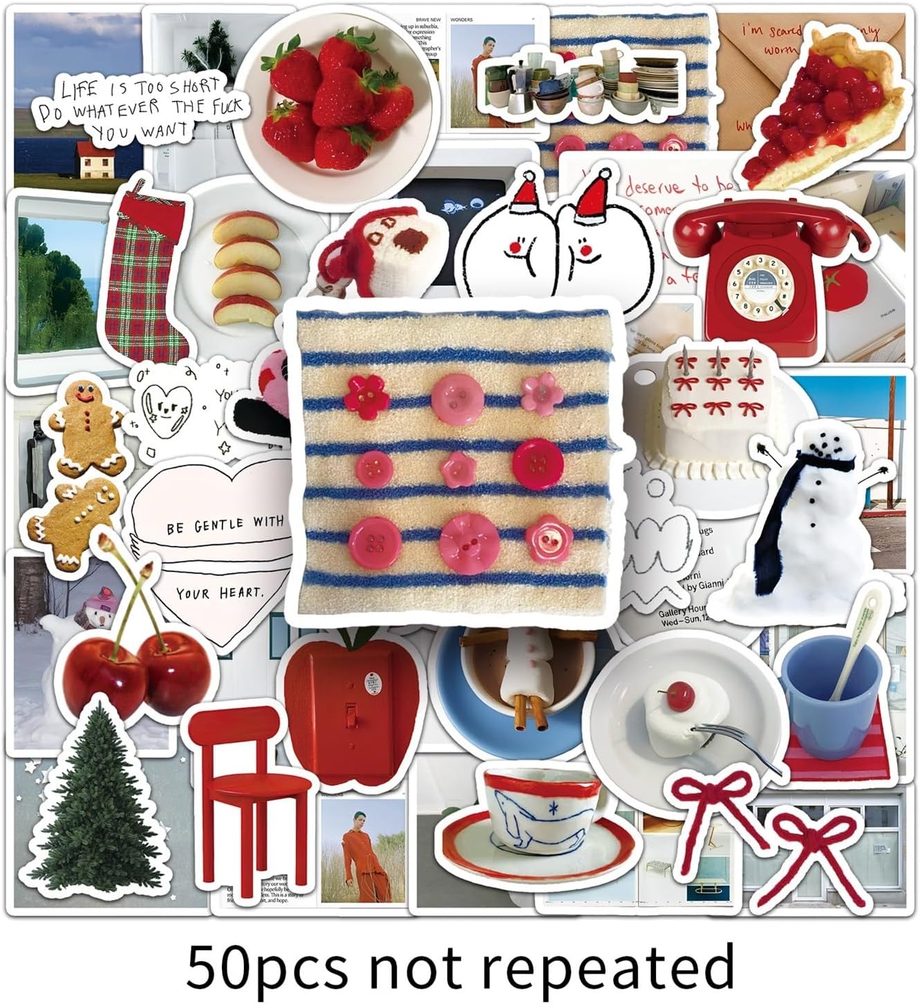 50 pezzi crema pastello estetica coreana carina minimalista trendy adesivi in vinile impermeabili per laptop valigia bottiglia d'acqua telefono diario ragazze adolescenti