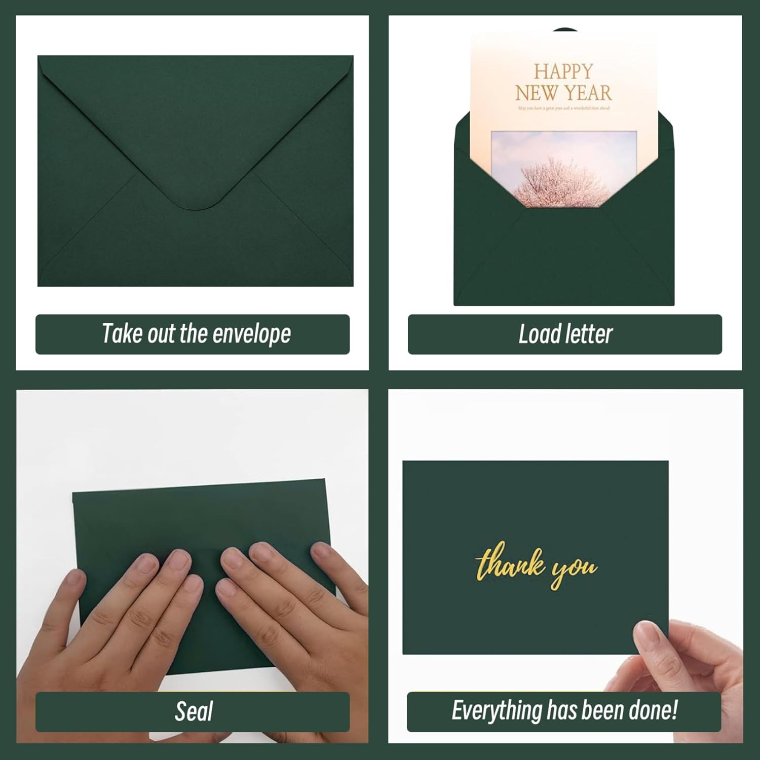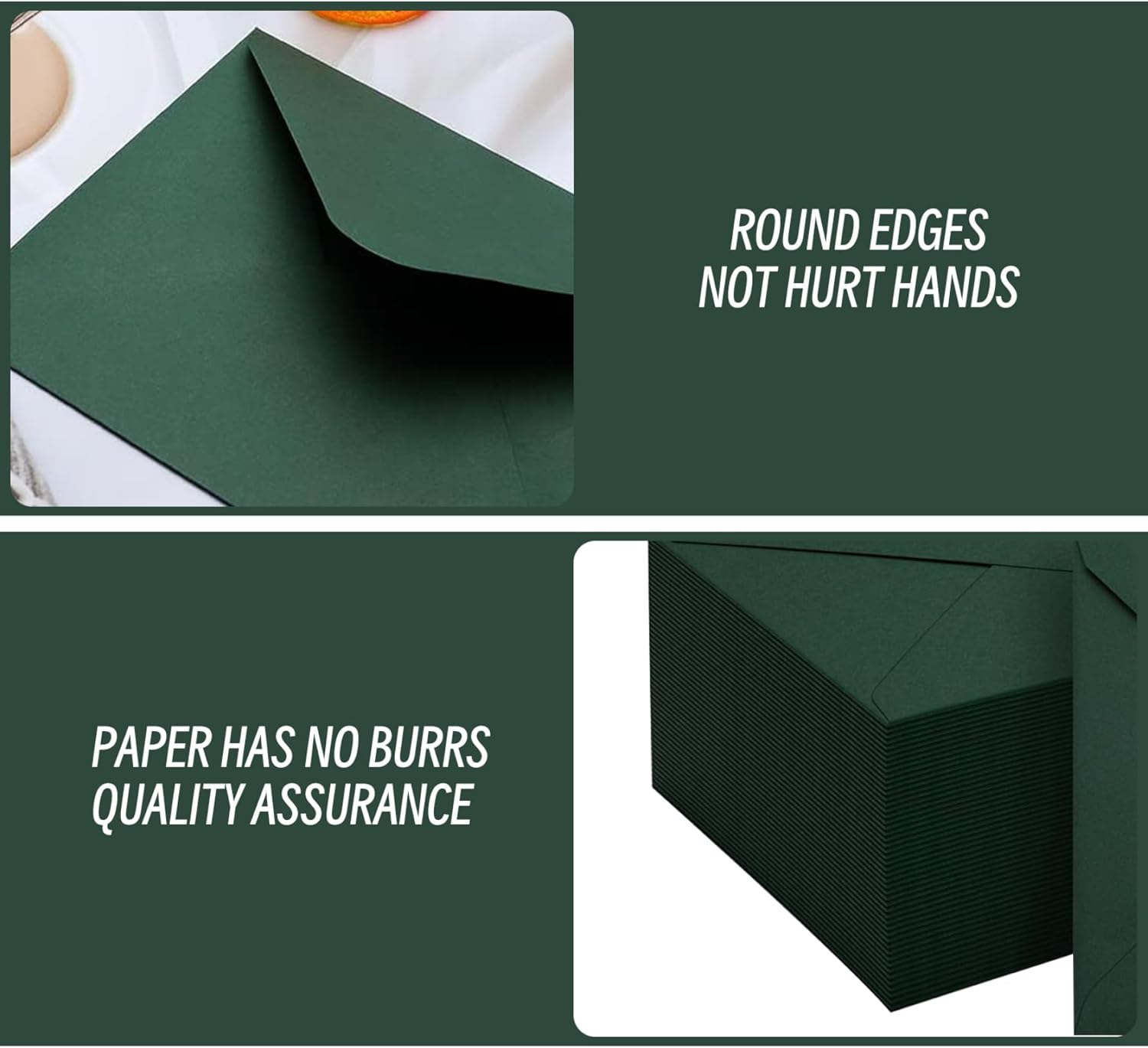 Quantità generosa: con 50 buste in ogni pacchetto, avrai molto a portata di mano per tutte le tue esigenze di cancelleria..Che tu stia inviando inviti per un matrimonio, baby shower o una festa di laurea, questo pacchetto sfuso ti assicura di essere ben preparato. Chiusura a v -flap sicura: progettati con un classico a patta e colla a colori, queste buste forniscono un sigillo affidabile e sicuro per la tua importante corrispondenza..I tuoi inviti rimarranno protetti durante la consegna, garantendo che arrivino in condizioni incontaminate. Elegante colore verde scuro: le nostre buste verdi presentano una ricca tonalità verde scuro che aggiunge un tocco di raffinatezza a qualsiasi invito o annuncio..Perfetto per occasioni formali, questo colore completa una varietà di temi, dai matrimoni alle laurea. Dimensione A7 ideale: misurazione di 5 x 7 pollici, queste buste A7 sono perfettamente dimensionate per le carte di invito standard..Offrono una vestibilità comoda per le tue carte, fornendo abbastanza spazio per un facile inserimento e rimozione. Versatile per ogni occasione: queste buste verdi sono versatili per vari eventi!.Ideale per graduazioni, matrimoni, docce per bambini o qualsiasi occasione speciale, aiutano a dare il tono alla tua celebrazione, rendendoli una scelta ponderata per le tue esigenze di posta.