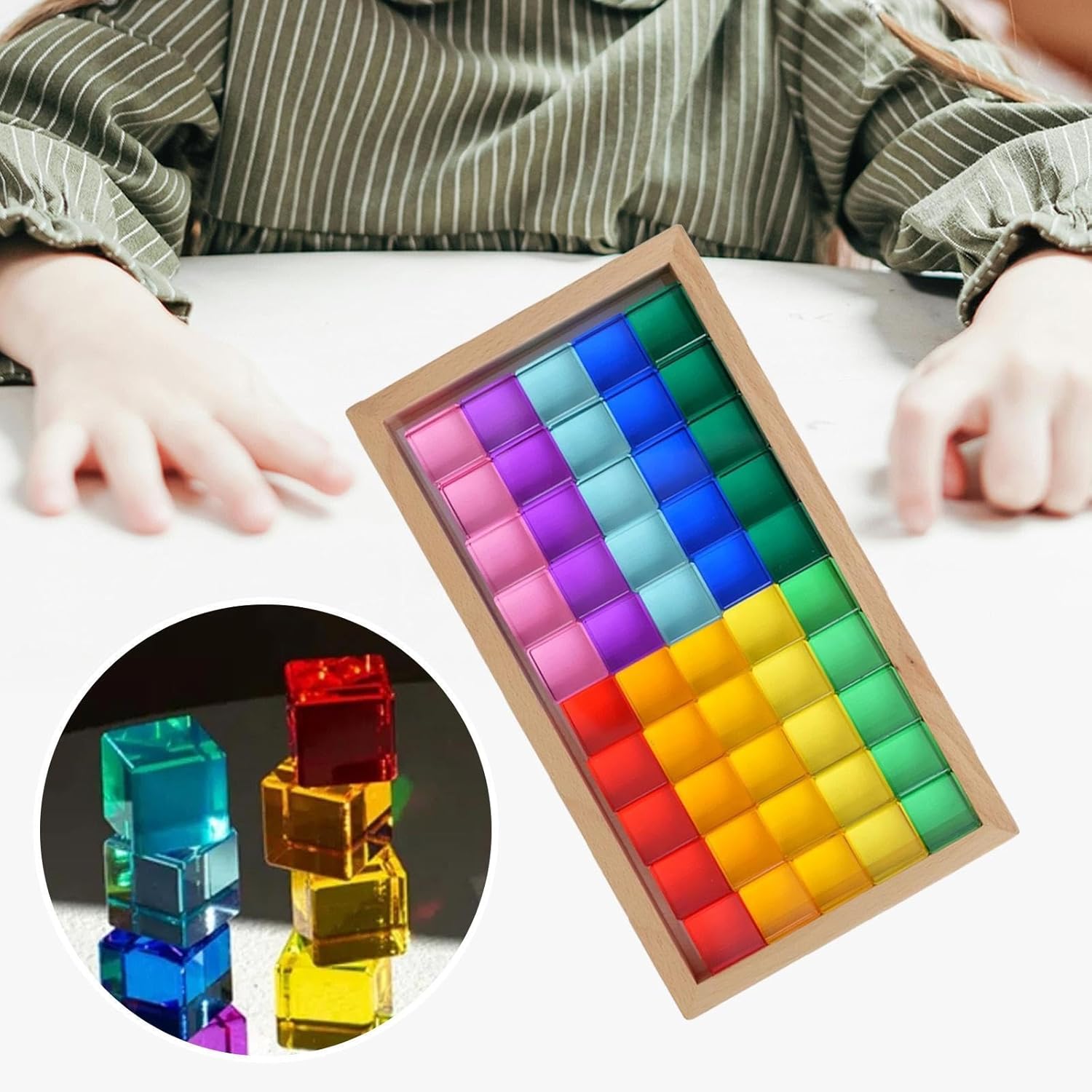 【Compatto】: Questa scatola di legno misura 28,5 cm x 15,5 cm / 11,22 pollici x 6,10 pollici, blocco singolo 2,5 cm x 2,5 cm / 0,98 pollici x 0,98 pollici 【Gioco sensoriale】: realizzato in acrilico di alta qualità e ad alta trasparenza, ogni blocco vanta colori brillanti e un effetto lucido e luminoso che cattura immediatamente l'attenzione del bambino, incoraggiando l'esplorazione di colori, luci e forme, rendendo l'apprendimento una meravigliosa esperienza sensoriale 【Creatività e immaginazione】: con una semplice forma a colonna quadrata e un ricco arcobaleno di colori, i bambini possono evitare di impilarli, ordinarli e disporli per creare modelli unici, e strutture fantasiose 【Sviluppa abilità essenziali】: Più di un semplice giocattolo, questo è strumento fondamentale per l'apprendimento precoce. Attraverso il divertimento pratico della costruzione e dell'equilibrio, i bambini sviluppano abilità cruciali come il pensiero logico, la consapevolezza spaziale, la risoluzione dei problemi e il controllo motorio fine. 【Versatile per casa e scuola】: Ideale per case, e centri di apprendimento precoce. Questi blocchi sono ideali per promuovere il legame genitore-figlio, incoraggiare il gioco cooperativo tra amici per costruire il lavoro di o per un gioco individuale e concentrato.