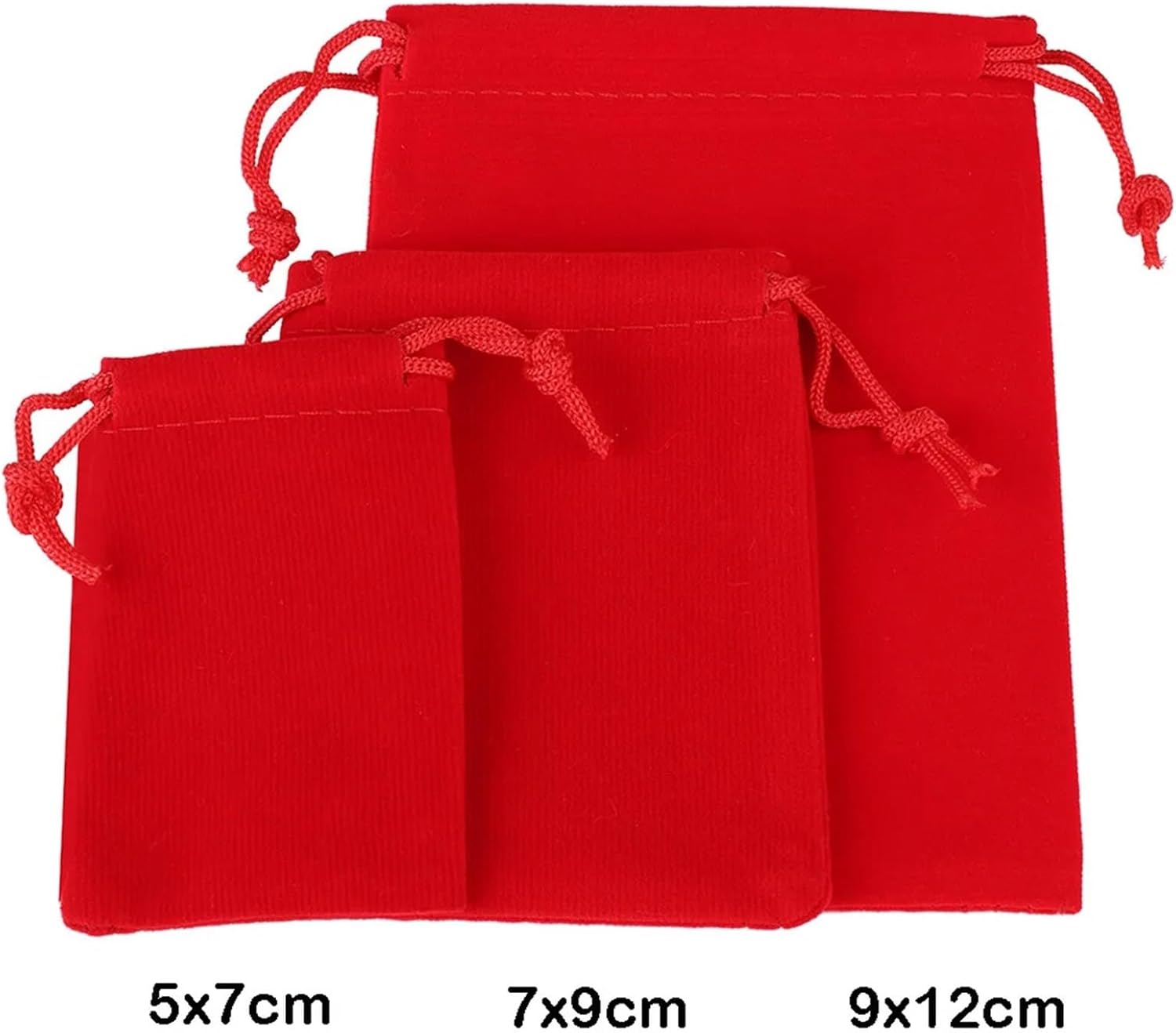50 pezzi di sacchetti regalo in velluto con coulisse for gioielli, esposizione di nozze, dolciumi, imballaggio Per Collana(Red,9x12cm)