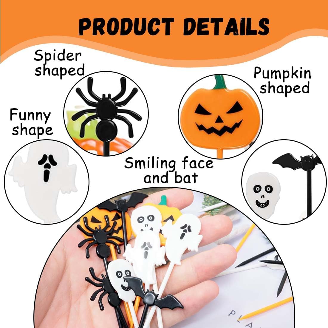 【Quantità sufficiente】La confezione include 50 pezzi di Halloween Kuchendeko con 5 diversi design tra cui zucche, pipistrelli, fantasmi, ragni, pipistrelli e scheletri, ogni design contiene 10 pezzi, sufficienti per le esigenze della tua festa. 【Materiale sicuro】i plettri per topper per torta di Halloween sono realizzati in plastica di qualità, solida e robusta, sono atossici, insapori, non si rompono facilmente e possono essere riutilizzati più volte dopo il lavaggio 【Pratici e decorativi】Gli stuzzicadenti sono adatti per contenere insalata, carne, ostriche, cupcake, dessert, antipasti, frutta a fette e altri stuzzichini o piccoli oggetti, soprattutto per chi ama mangiare piatti di frutta, aggiungendo più divertimento e aiutandoti a riconoscere facilmente il tuo cibo 【Atmosfera di Halloween】i plettri in plastica di Halloween possono essere applicati per feste di compleanno, feste a tema Halloween, matrimoni, uso quotidiano, aggiungendo più divertimento e rendendo il tuo Halloween unico. 【Garanzia di soddisfazione】Ci impegniamo a realizzare prodotti di alta qualità. Nota: gli stuzzicadenti per frutta di Halloween non possono essere messi in forno o nel microonde con le torte.