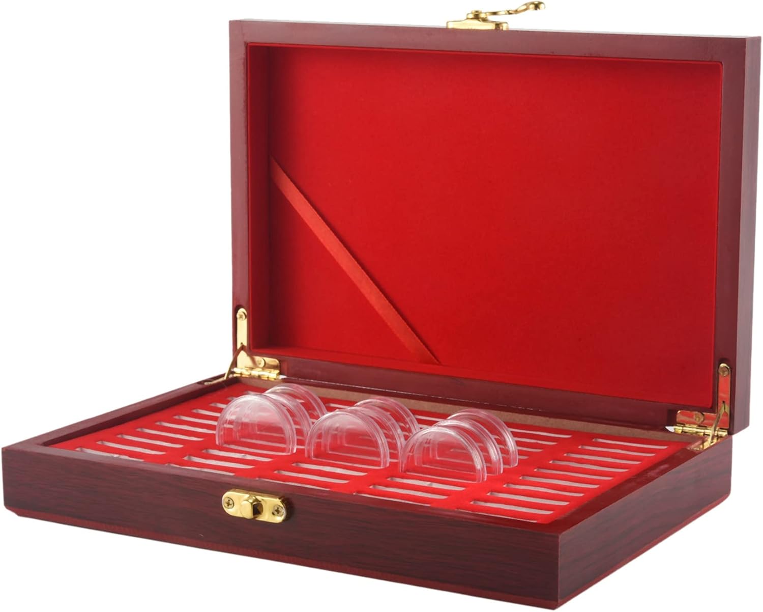 Il doppio vassoio trasparente e piatto ti consente di apprezzare la parte anteriore e posteriore della moneta Custodia portaoggetti per scatola di protezione per monete + 50 piccole scatole rotonde Scatole + 50 cuscinetti interni Caratteristiche: 100% nuovo di zecca e di alta qualità Sicuro ma facile da aprire e chiudere
