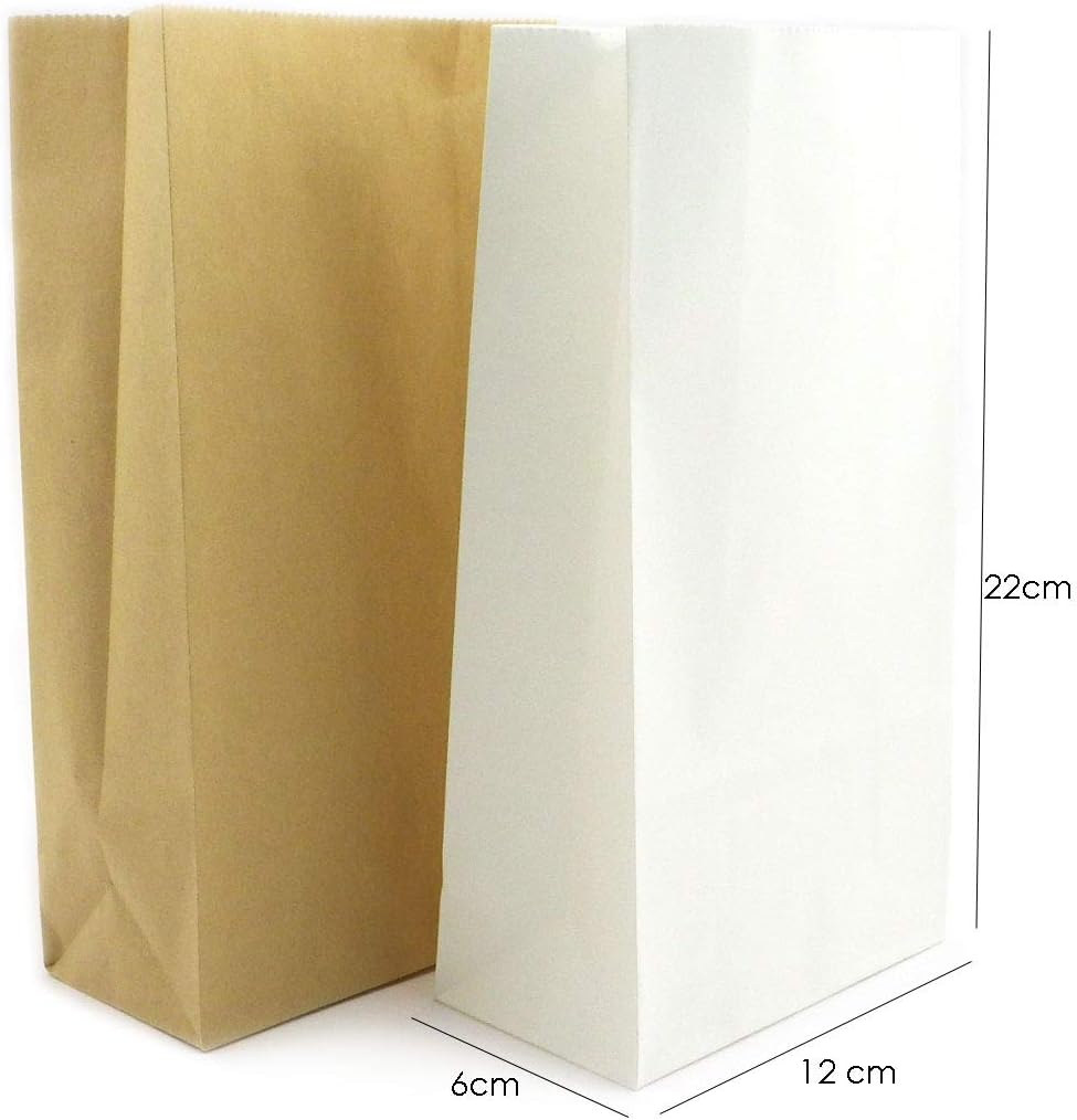 50 sacchetti di carta con fondo per scopi decorativi Colore bianco + marrone - Misura media: 22 x 12 x 6 cm - A: 22 cm, L: 12 cm, P: 6 cm Quantità 50 Materiale ecologico 🌳 Senza stampa Scrivibile/incollabile - non si sgualcisce grazie alla piegatura a macchina Adatto per bricolage, confezionare regali, creare biglietti d'invito fatti in casa o calendari dell'Avvento o semplicemente per riporre, Sepkina è una marca tedesca - + fattura con IVA mostrato