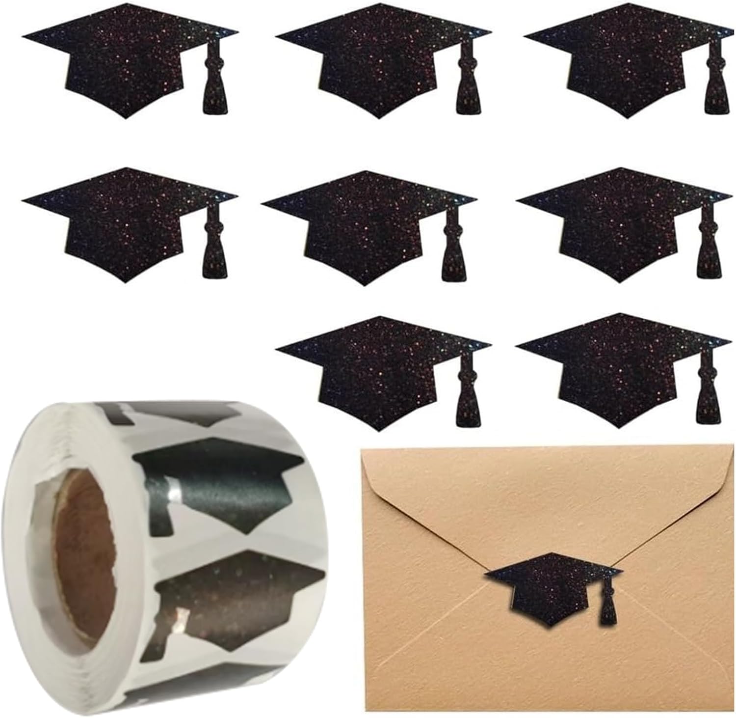 Festeggia la tua laurea con il nostro scintillante adesivo per cappello di laurea, con 500 etichette adesive adesive che è ideale per aggiungere un tocco di divertimento a qualsiasi evento di laurea Ampiamente usato per decorare cappelli da laurea, abiti da laurea, buste sigillanti, pacchi, bouquet di laurea, biglietti di apprezzamento, album fotografici, diari, quaderni, confezioni, decorazioni per feste. Questi adesivi per avvolgere aiutano a creare un regalo di laurea unico Molto adatto per studenti laureati, insegnanti e genitori che cercano di aggiungere creatività e divertimento alla celebrazione della laurea Migliora la tua festa di laurea con questi adesivi decorativi di laurea, rendendolo un'aggiunta essenziale alla tua festa di laurea e alle forniture decorative Realizzati in carta patinata e adesivo, questi adesivi decorativi per imballaggio sono facili da applicare e senza lasciare residui. Ogni etichetta adesiva misura 30 x 15 mm