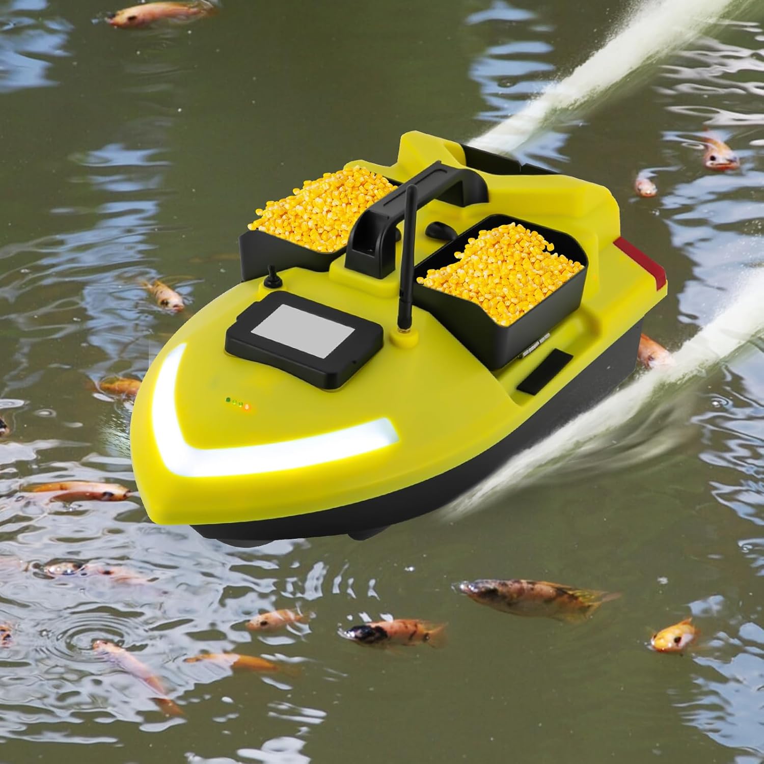Performance potenti: la mangiatoia è dotata di potenti motori doppi progettati per fornire una potenza sufficiente per la barca di viaggiare, e dotato di un'elica a tre foglie per aumentare la spinta e l'ampiezza della pagaia in acqua per prestazioni potenti e velocità di crociera veloce. Buone prestazioni: la fionda da pesca utilizza una frequenza di controllo 2.4G, la distanza di controllo remoto può arrivare fino a 1640,42 piedi. Adottando sistema di calibrazione automatica Beidou e sistema di posizionamento GPS, 40 punti di posizionamento possono essere regolati per garantire un posizionamento accurato e migliorare l'efficienza della pesca. CRUISE CONTROL SYSTEM: basta un tocco per accendere il sistema di controllo della crociera, in modo che la barca mantenga una linea retta a una velocità costante per liberare le mani. ALTA SICUREZZA: il livello di potenza della barca viene visualizzato sullo schermo del telecomando. Se la potenza del gommone è troppo bassa o il segnale è scadente per un lungo periodo di tempo, la luce del gommone lampeggia, il telecomando emette l'allarme "Drip-Drip" in modo intermittente e il gommone ritorna automaticamente in mare. CORREZIONE AUTOMATICA DEL CORSO: BARCA DA FORAGGIO PESCA dispone di un sistema di correzione automatica integrato che può correggere in modo intelligente la rotta per garantire che il gommone mantenga una velocità stabile e percorra in linea retta con vento, onde e carico. Design compatto: la mangiatoia con gps dispone di tre scomparti per esche controllabili in modo indipendente con una capacità di carico di circa 4,41 libbre, in modo da poter controllare l'uso del nido dell'esca a piacimento. Il vano posteriore per esche dispone anche di un design anti-smontaggio in cui il gancio rilascia la corda e non si aggroviglia.