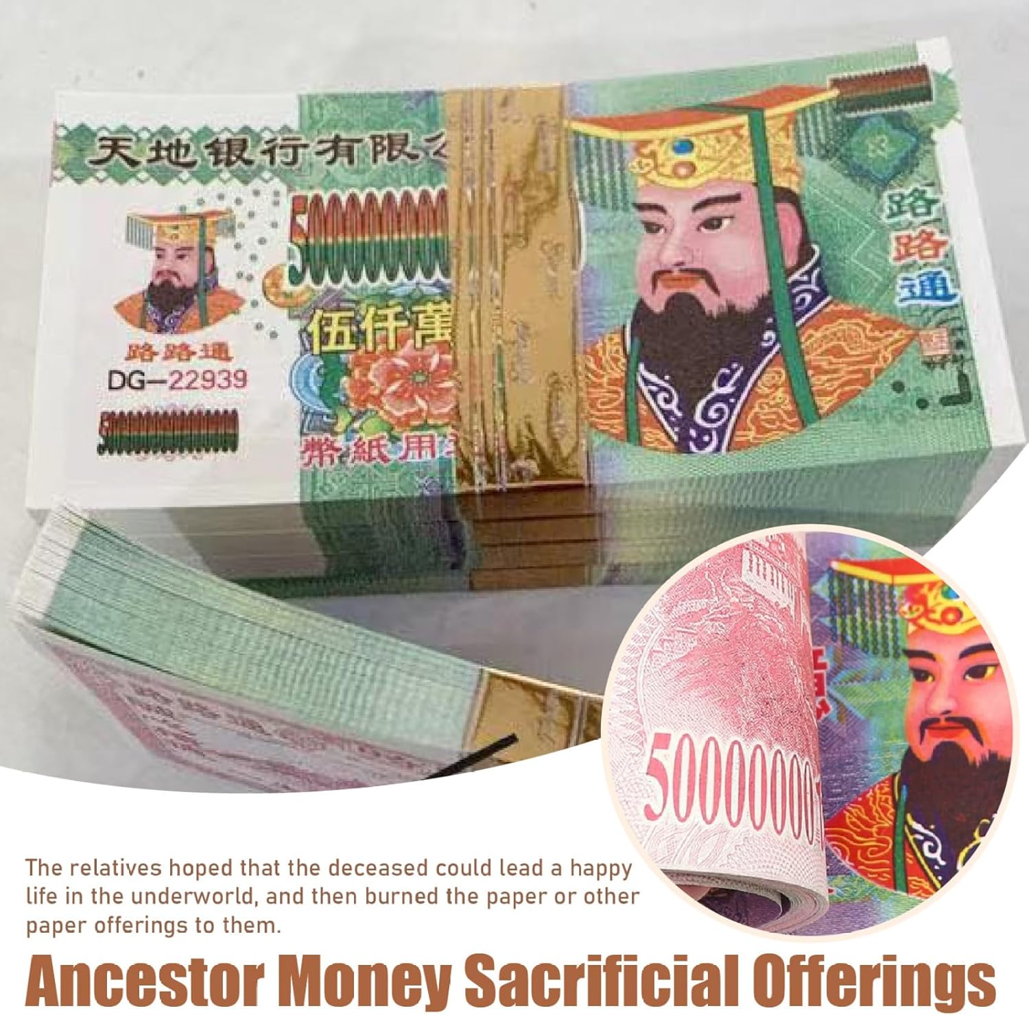 In primo luogo, questo denaro antenato è puramente simbolico e non ufficialmente riconosciuto come una valida forma di valuta da qualsiasi istituto bancario o agenzia governativa..In secondo luogo, le denominazioni sono casuali..Terzo, quando si brucia denaro antenato, dà la priorità sempre alla sicurezza..Brucia in un'area ben ventilata, preferibilmente in un contenitore di metallo, e assicurati che le braci siano completamente estinte al termine..Non lasciare mai il proces NOTA: attenzione alla sicurezza del fuoco quando si brucia denaro cinese, offerte sacrificali hanno un po 'di odore quando si brucia, per favore brucia alle prese d'aria o all'aperto di denaro offuscato in denaro realistico 100 I parenti speravano che il defunto potesse condurre una vita felice negli inferi e hanno bruciato i soldi della carta cinese e altri sacrifici di carta..Connessione rafforzante con i tuoi antenati bruciando le banconote di Jade imperatore Hell Bank..Bruciare denaro antenato a loro e si prenderanno cura del tuo oggetto di denaro realistico 100 anni I soldi degli antenati possono essere usati in funerali, anniversario della morte degli antenati, festival di Qingming, Obon Festival o Hungry Ghost Festival, creando un legame tra il mondo fisico e il regno spirituale..Serve come segno di amore, rispetto e ricordo, esprimendo il desiderio di condividere le proprie benedizioni mondane con i tuoi antenati..Inferno, Hell Notes antenato Money Indipendentemente dal fatto che tu lo usi per i rituali di comunicazione spirituale ancestrale o come strumento di insegnamento per educare la commemorazione delle tradizioni antenate, il nostro denaro antenato funge da profondo artefatto culturale..Inoltre, può essere usato come decorazione unica o un dono ponderato per coloro che apprezzano la filosofia e la spiritualità..Note infernali Ancestor Money Sacrificale Paper Money