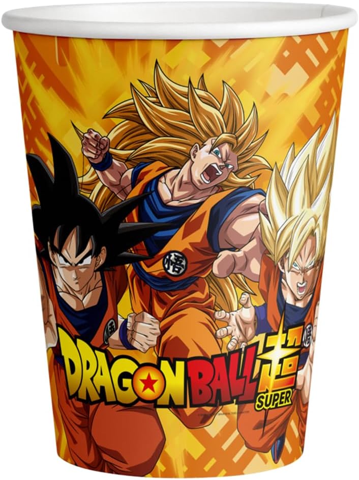 ALMACENESADAN, 5039 8 bicchieri di cartone ideali per feste e compleanni della licenza Dragon Ball; capacità 220 ml; confezione da 8 bicchieri Dragon Ball
