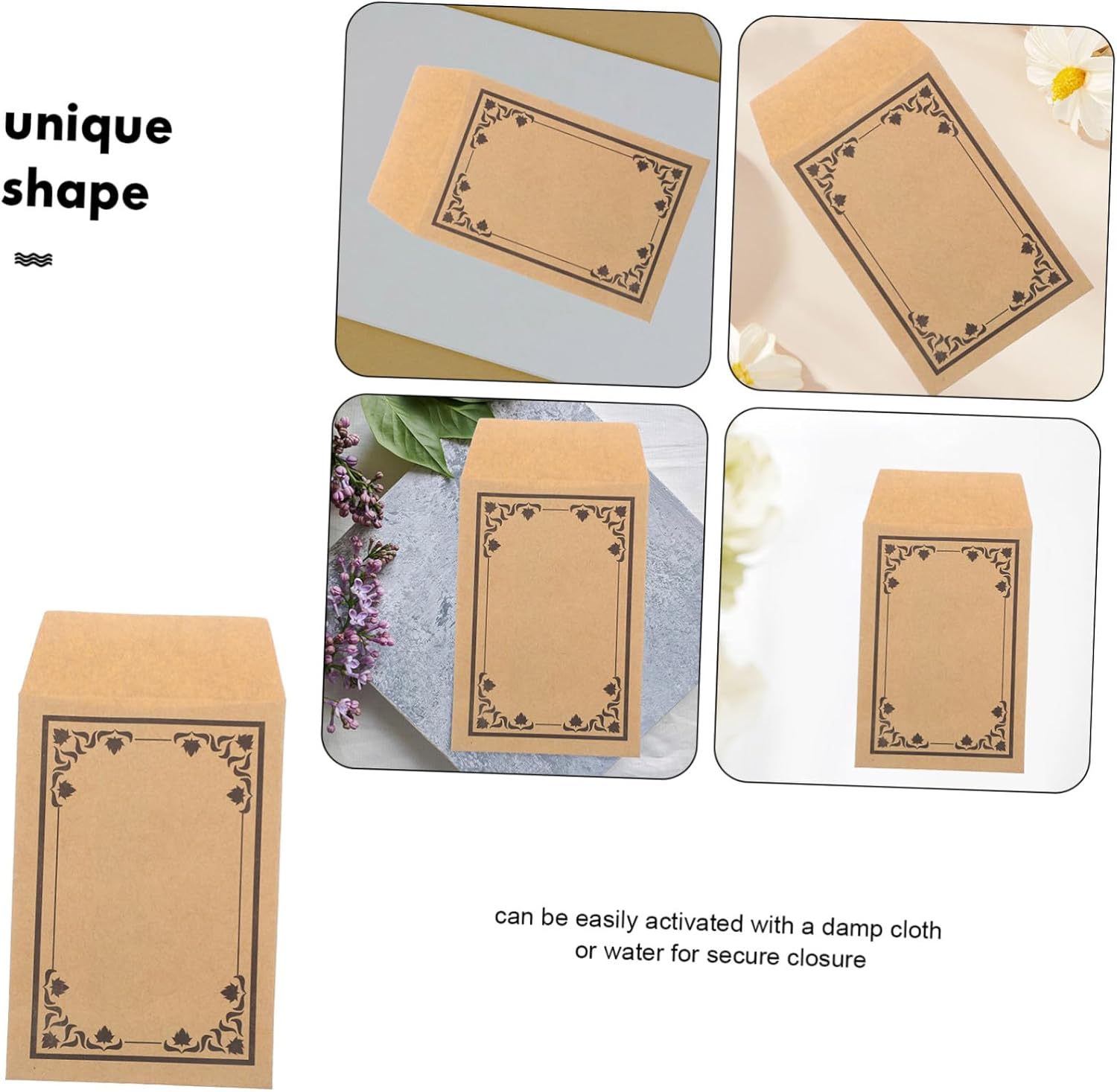 Autosigillante efficiente: il design autosigillante fornisce un modo semplice e veloce per chiudere le buste, risparmiando tempo e fatica Robusta carta kraft: realizzate con eccellente carta kraft, queste buste sono durevoli e affidabili per l'uso quotidiano Compatti e portatili: il loro design piccolo e leggero li rende facili da trasportare, ideali per varie applicazioni Uso multiuso: queste buste sono ideali per riporre bigiotteria, , carte, schede e altri piccoli oggetti Sigillatura attivata dall'umidità: la striscia adesiva viene attivata dall'umidità, fornendo una sigillatura sicura con solo un panno umido o acqua