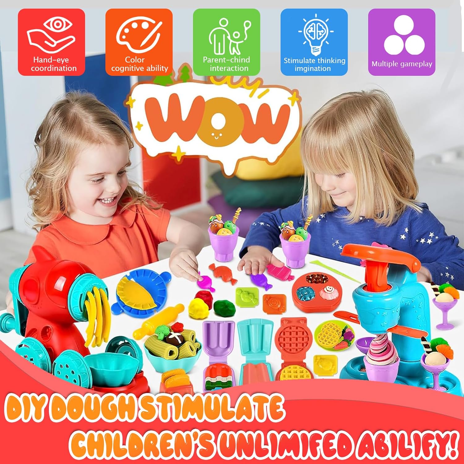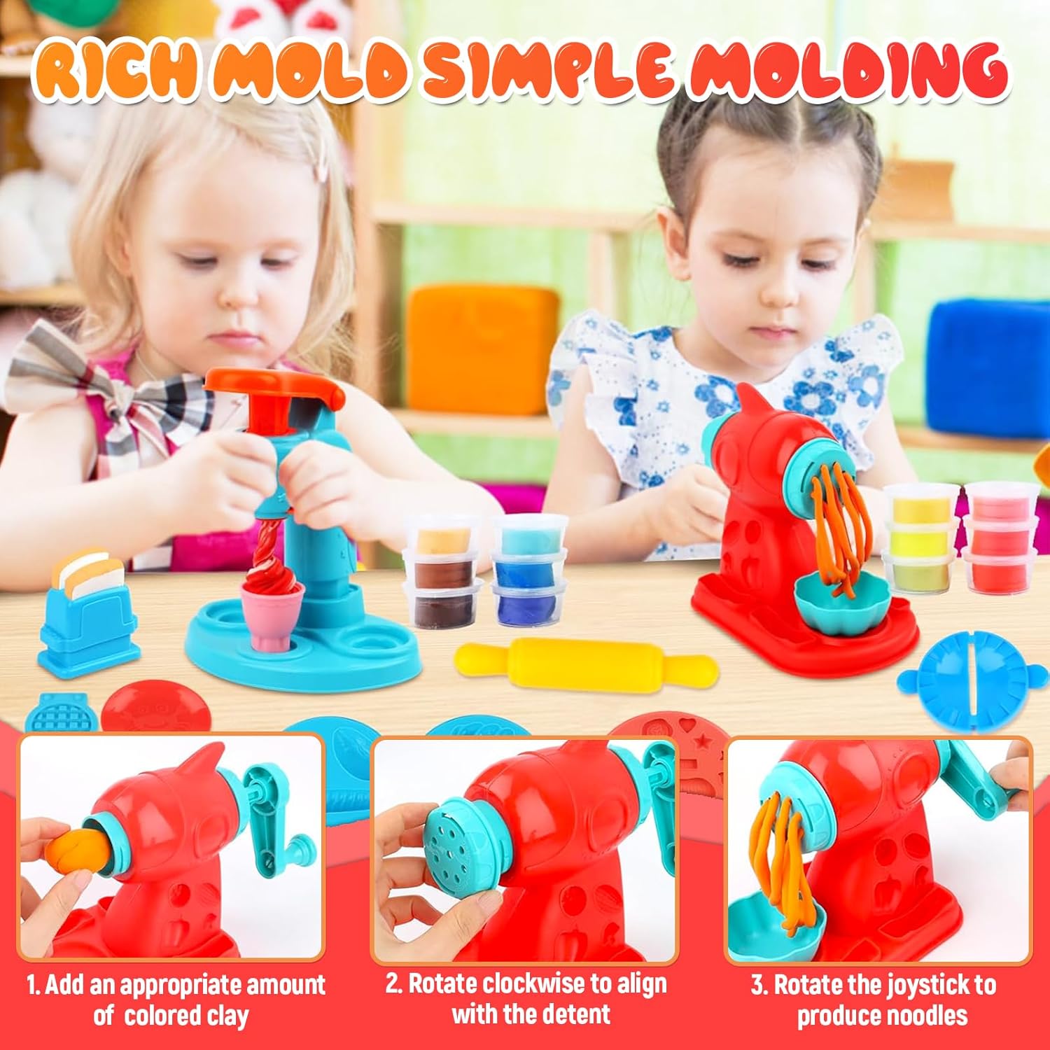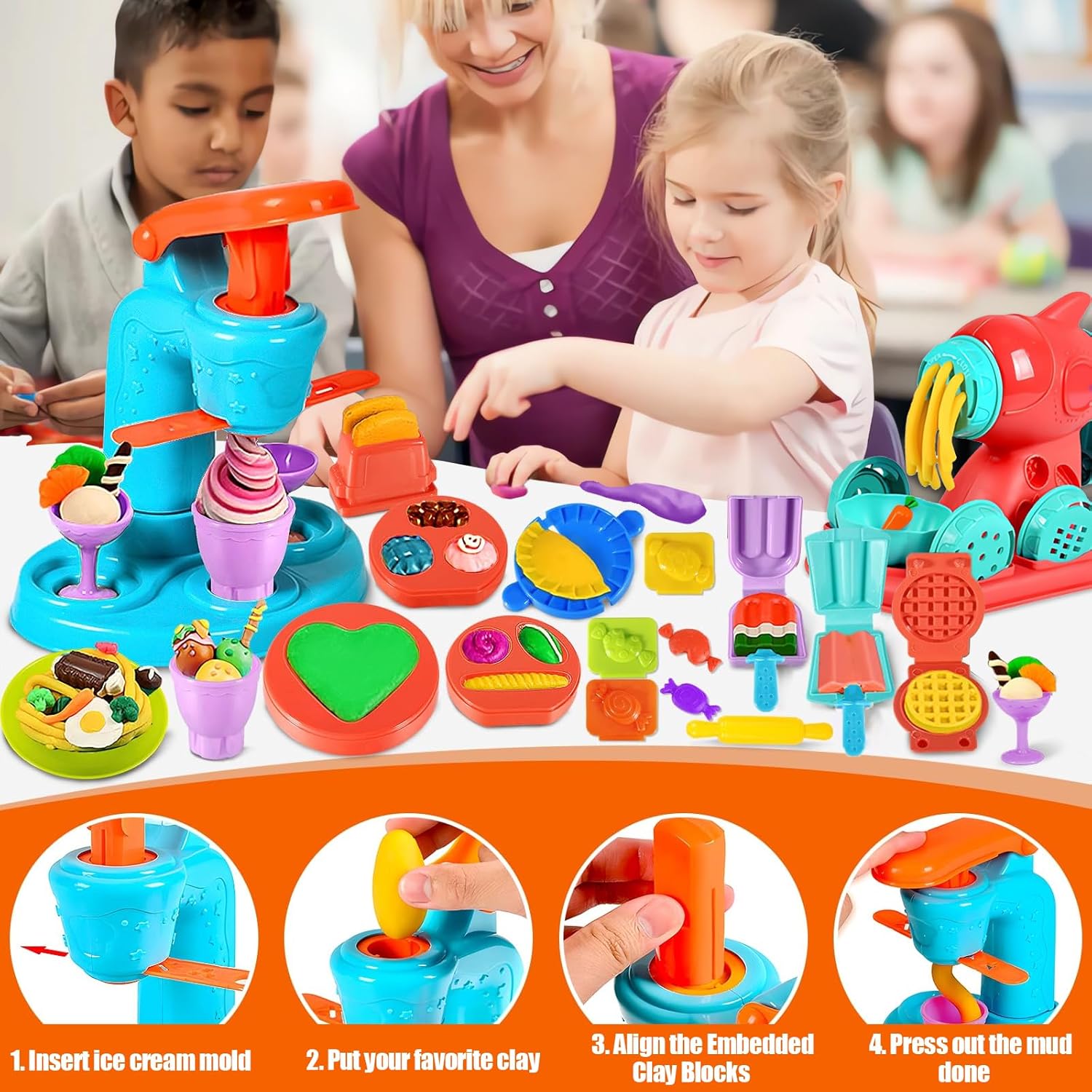 🍔 【Set di pasta da modellare】 Il set di giocattoli per pasta da 51 pezzi comprende: una macchina per la pasta, una macchina per il gelato, 12 impasti da modellare, forme di pasta di argilla come animali, cibo e varie forme geometriche. E strumenti per la pasta da gioco come tagliapasta per bambini, mattarelli, tagliabiscotti, estrusori. 🍧【Stampi per pasta】Pasta da modellare Ci sono 51 accessori in totale, puoi creare tutti i tipi di modelli alimentari che ti piacciono, ci sono molti modi per creare una forma, scatena la tua immaginazione e lavoraci sopra con i bambini! 🎨【Alta qualità】Ogni accessorio per plastilina è realizzato in plastica sicura e di alta qualità, un materiale molto robusto e colorato, non tossico. La pasta da modellare è composta da farina di grano commestibile, non grassa, non appiccicosa, può essere utilizzata ripetutamente. 🍬【Giocattoli Educativi】Il set di strumenti per plastilina può creare vari giochi creativi. Il gioco ha molti temi diversi, offrendo a tuo figlio molti giochi di ruolo creativi per migliorare le abilità pratiche, migliorare le capacità di pensiero ed esercitare pienamente l'immaginazione durante il processo di gioco. 🍿【Regalo perfetto】Confezionato in una squisita confezione regalo. Per i bambini che amano giocare ai giochi in costume da chef o ai giochi di ruolo, questo è un regalo ideale! Potete immaginare quanto siano emozionati!