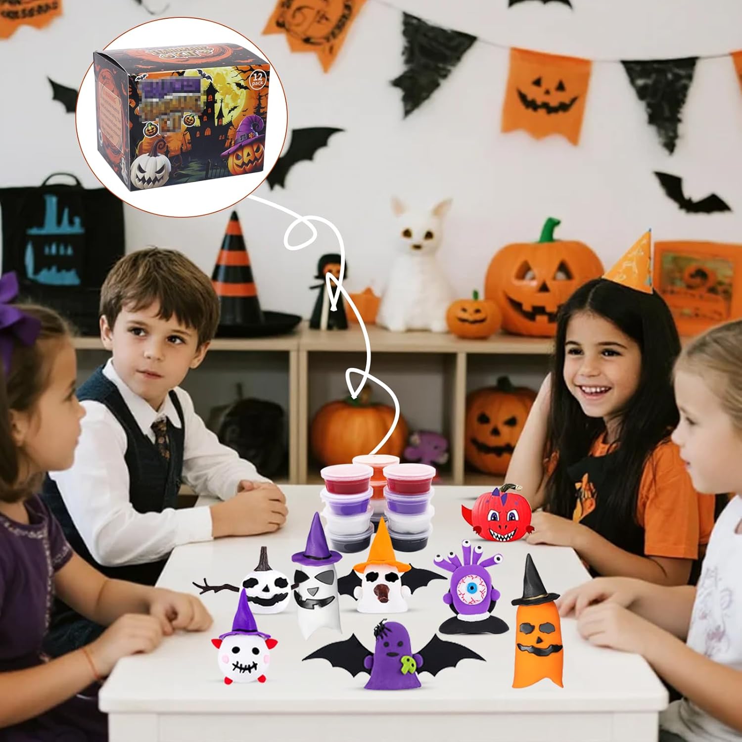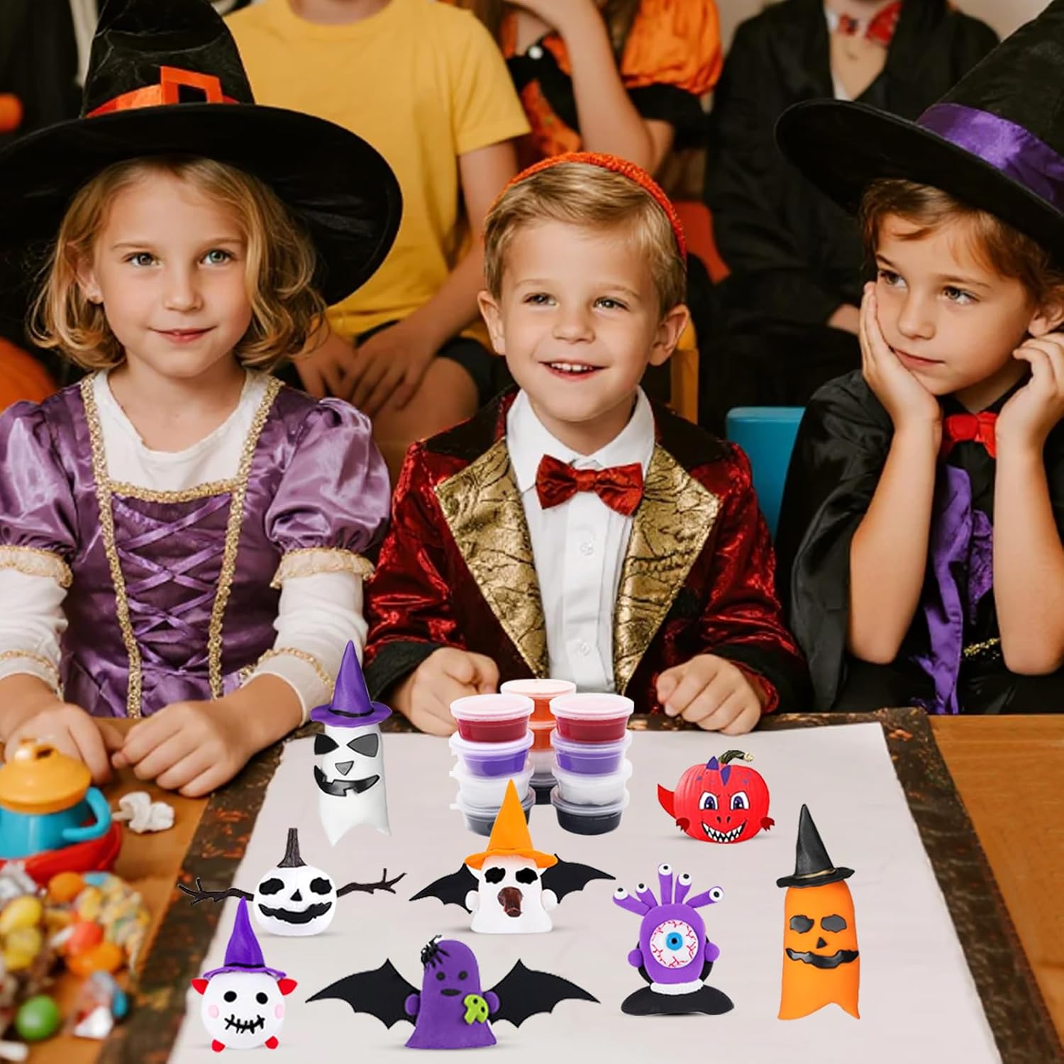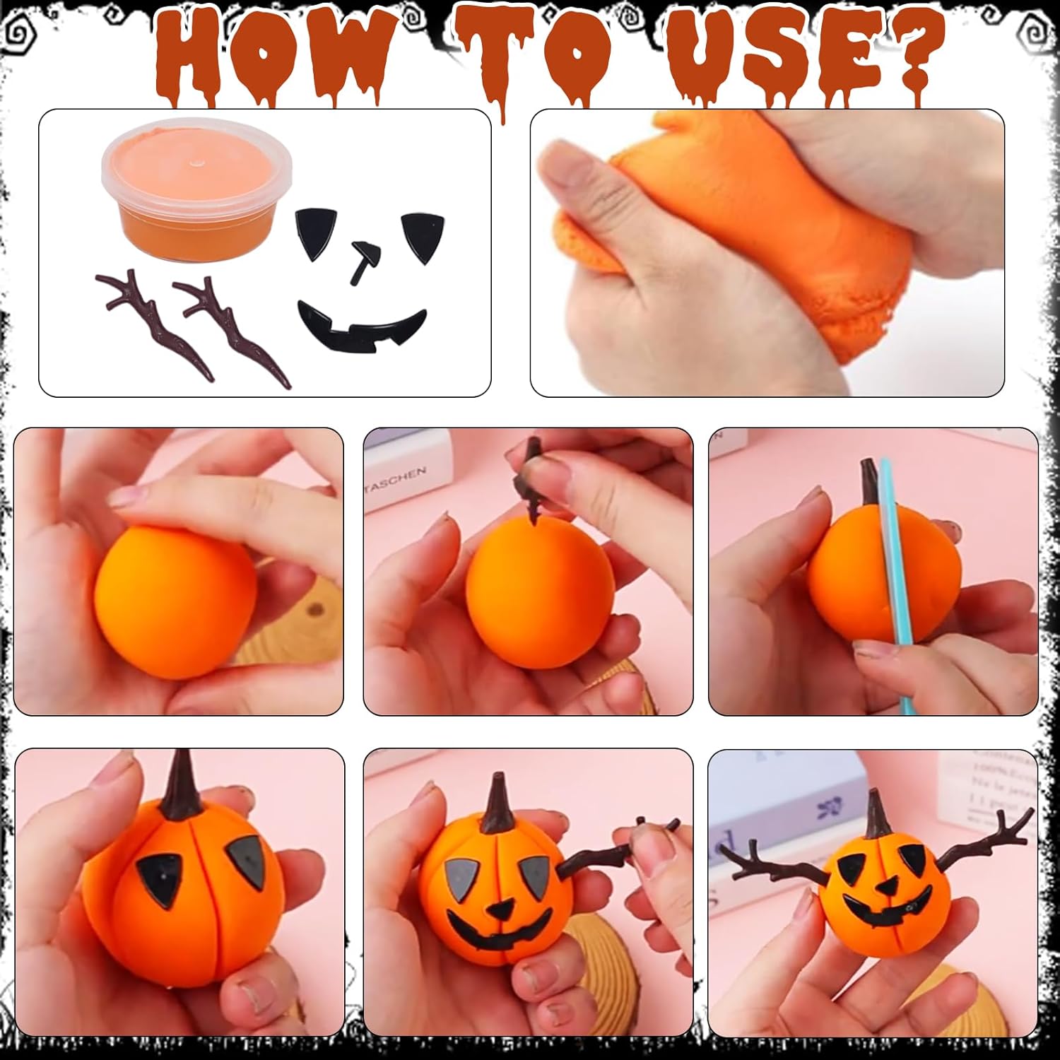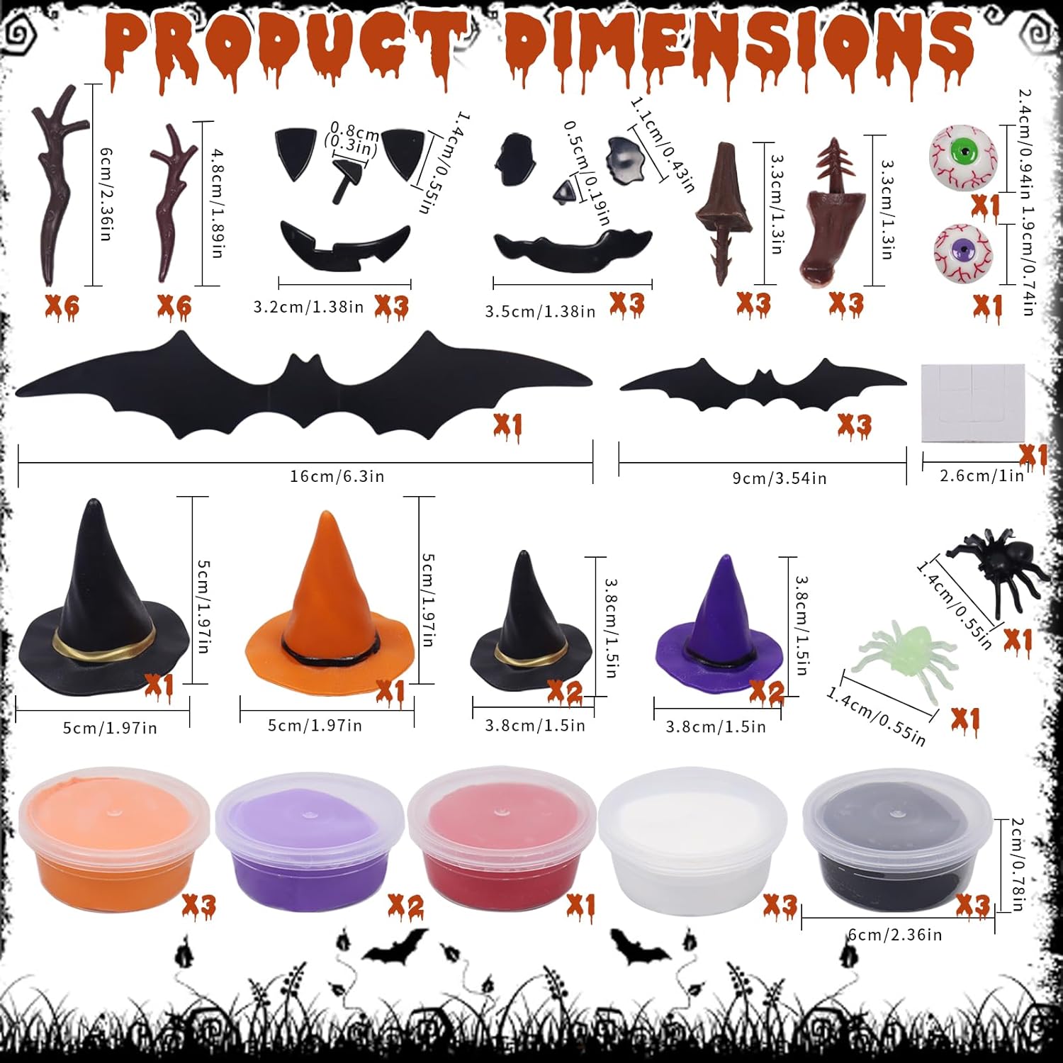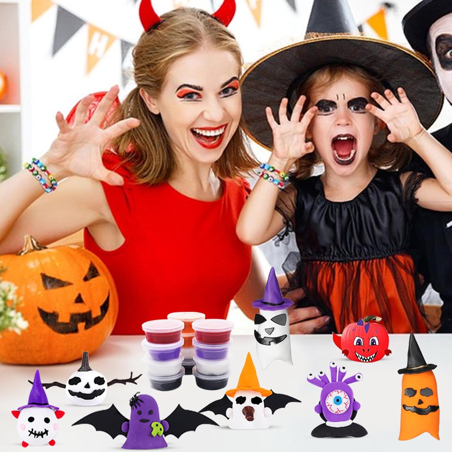 Set di accessori per plastilina per Halloween: lussuoso set da 51 pezzi. 12 impasti, 6 rami grandi, 6 piccoli rami, 6 cappelli da strega, 3 nasi marroni, 3 cappelli marroni, 6 set di facce spaventose, 2 bulbi oculari, 2 ragni, 1 grande pipistrello, 1 piccolo pipistrello. Alta qualità: questo set di plastilina per Halloween è realizzato in plastica di alta qualità ed è sicuro, durevole, facilmente modellabile e resistente al taglio. È colorato e riccamente attrezzato. È ideale per bambini dai 3 anni. Set di plastilina fai da te per bambini: il set di plastilina per bambini contiene 12 barattoli di plastilina in 5 colori, abbastanza per i bambini per dare libero sfogo alla loro immaginazione e creare le proprie statuette di Halloween Strumenti di modellazione facili da modellare: questi strumenti per impastare sono colorati e hanno forme diverse, in modo che i bambini possano facilmente tagliare, modellare e modellare diversi regalini per feste di Halloween. Regalo per Halloween: questo set di accessori per plastilina è ideale come regalo di Halloween per bambini. È anche ideale per attività di gruppo come feste di compleanno, attività in classe e giochi a casa. (Il set contiene piccole parti. I bambini dovrebbero giocare sotto la supervisione di un adulto