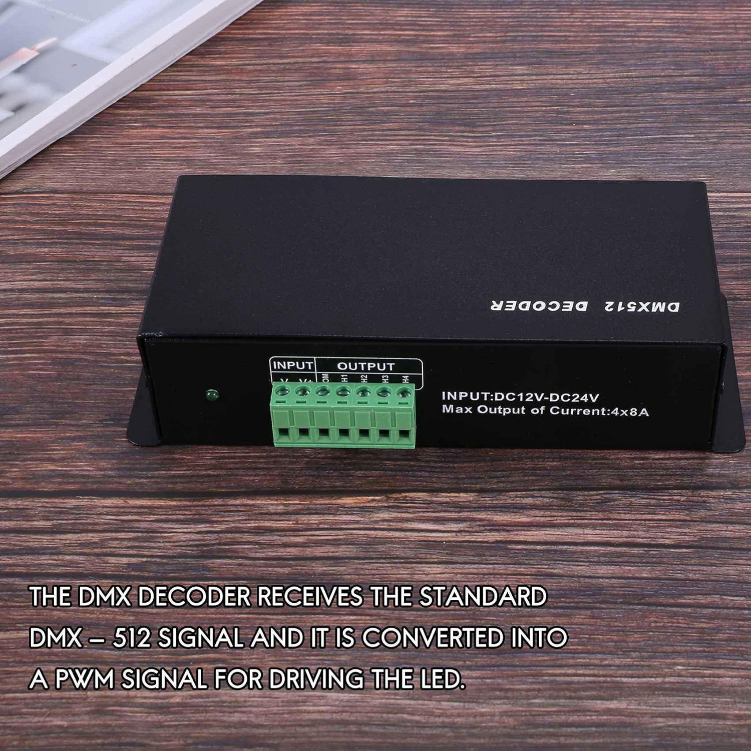 Collegare la console digitale e il modulo per ottenere l'attenuazione e varie procedure di modifica. Il decoder riceve il segnale standard - 512 e viene convertito in un segnale PWM per guidare il LED. Basso costo e alta qualità.