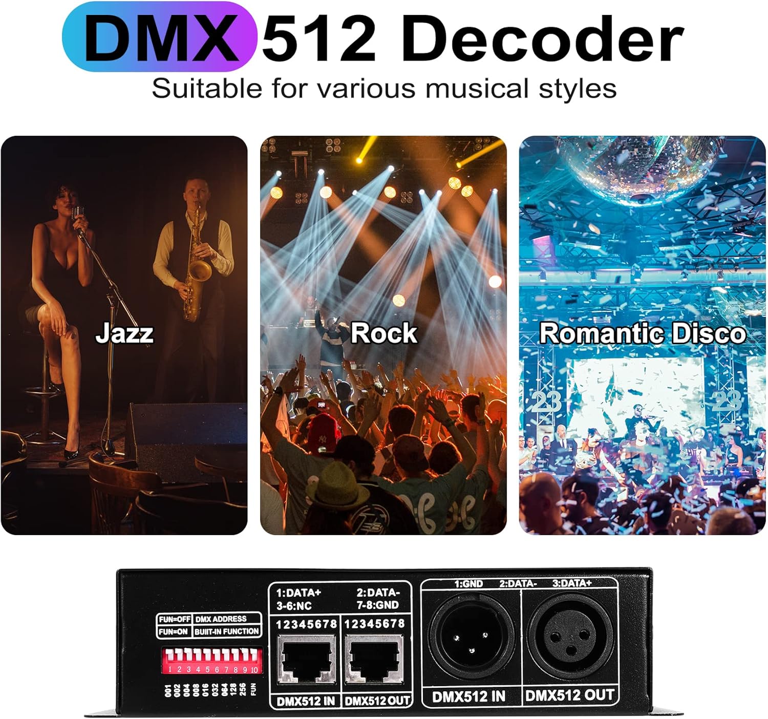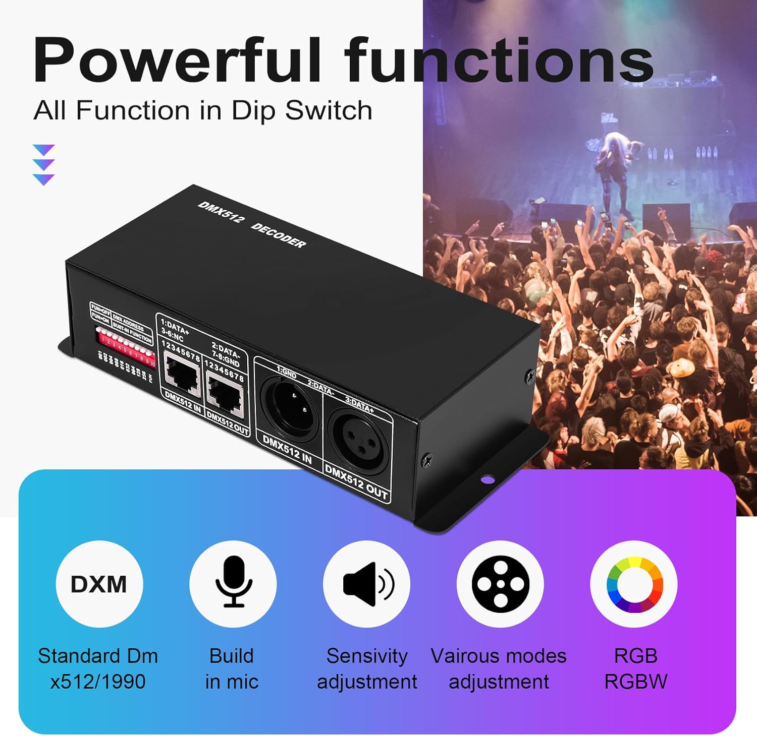 Il decodificatore riceve il segnale -512 standard e viene convertito in un segnale PWM per il pilotaggio del LED. Collega la console digitale e il modulo per ottenere dimming e procedure di modifica. Basso costo e alta qualità.