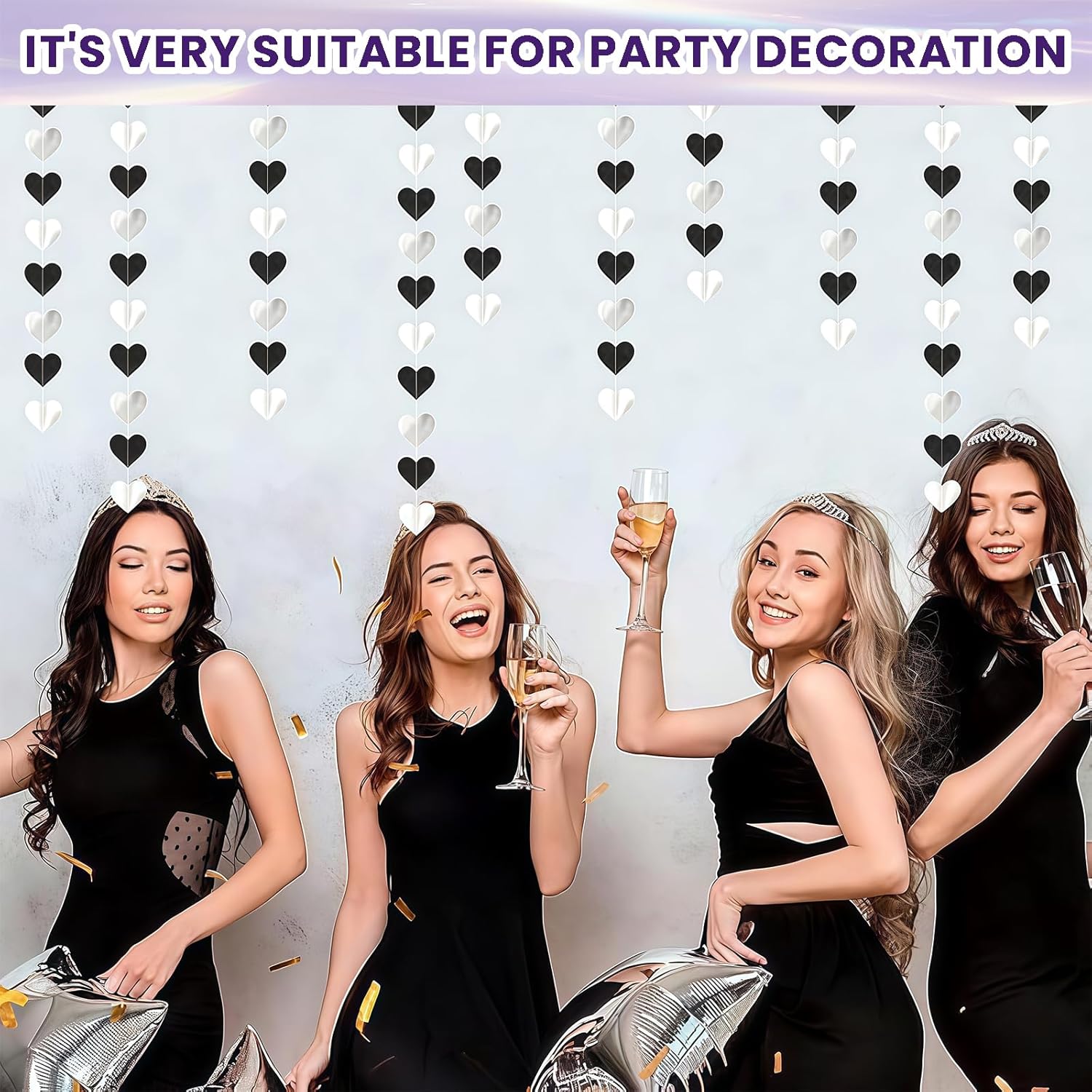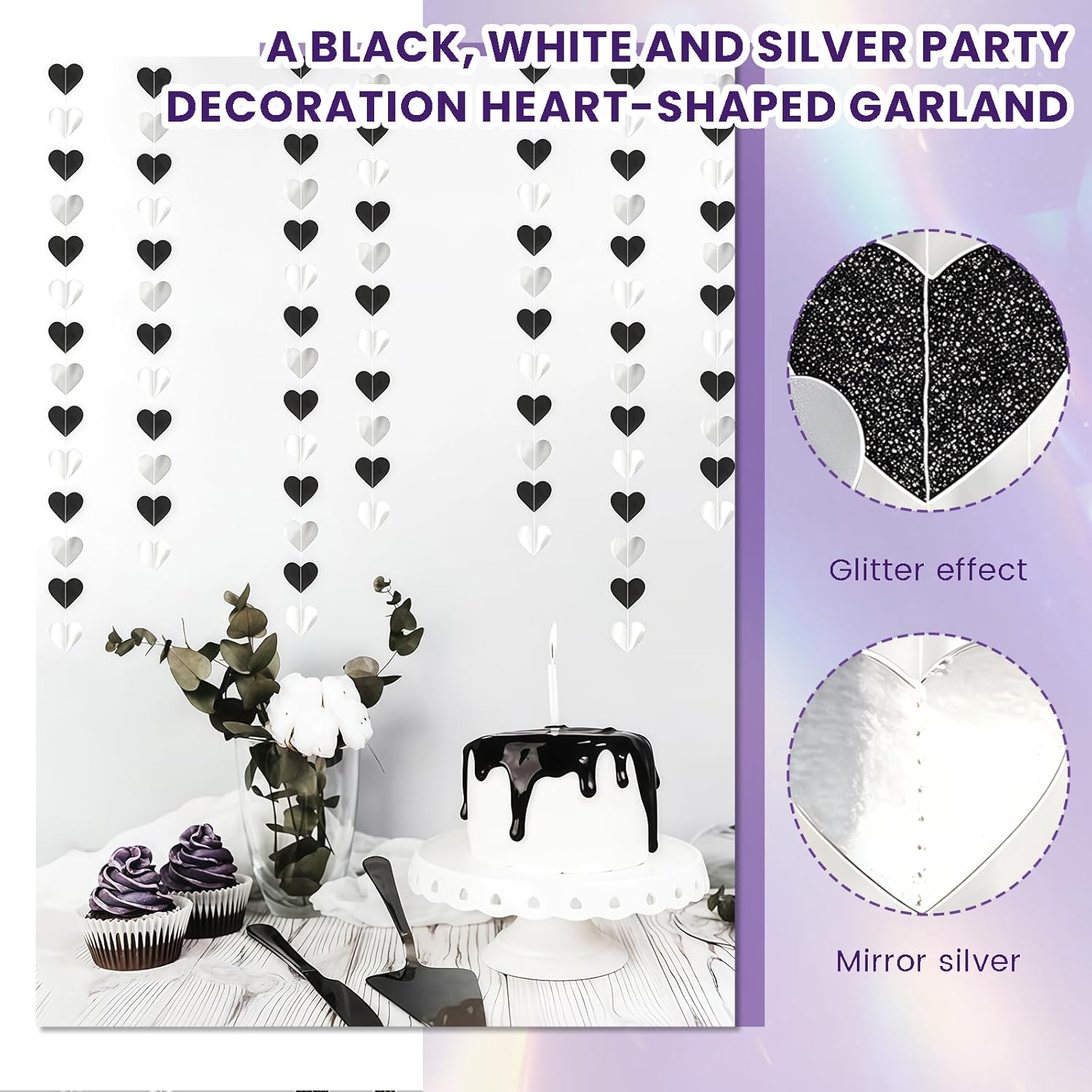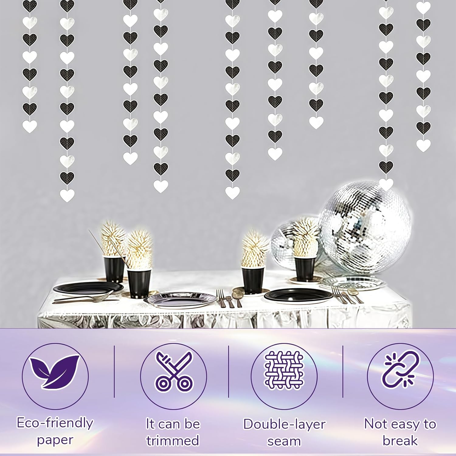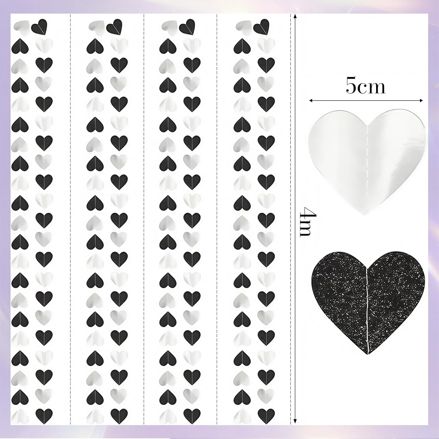 Set Completo: Il set include 4 ghirlande di carta argento e nero. Ogni decorazione è lunga 13 piedi / 4 metri, per una lunghezza totale di 52 piedi / 12 metri. Ogni banner contiene 40 cuori di dimensioni 1,97 pollici. Ideale per decorazioni di matrimoni e altri eventi Materiale di Alta Qualità: Le ghirlande da festa sono realizzate in carta ecologica e glitterato su entrambi i lati. È possibile accorciare le ghirlande a piacere senza che la carta si strappi Montaggio Facile: Basta aprire il pacchetto e appendere le ghirlande direttamente. Sono cucite con filo robusto su entrambi i lati, risparmiando tempo ed energia. Le ghirlande possono essere sospese al soffitto, sopra un tavolo, sotto il portico o dai rami degli alberi Applicazioni Versatili: Ideali per decorazioni di compleanni, lauree, feste prematrimoniali, matrimoni, addii al nubilato, fidanzamenti, decorazioni sospese nero e argento, feste di Capodanno e altri eventi Garanzia di Qualità: Se non sei soddisfatto del colore, qualità o altri aspetti, ti preghiamo di contattarci per un rimborso o una sostituzione. Offriamo una garanzia di restituzione di 30 giorni per ogni acquisto