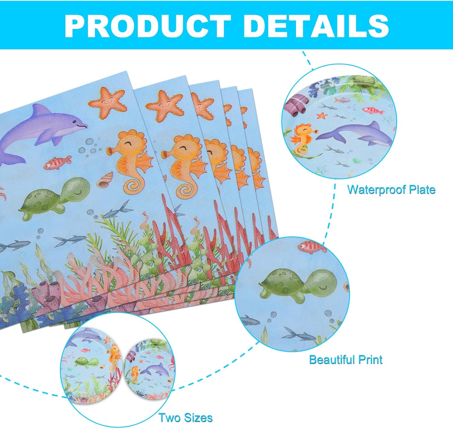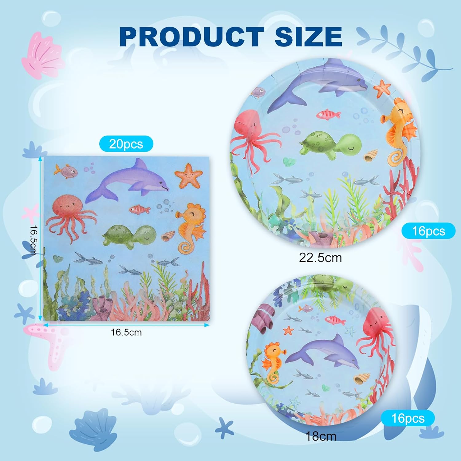 【Materiali di alta qualità】Questo set di piatti a tema oceanico è realizzato in carta biodegradabile, un materiale ecologico. I piatti hanno una superficie impermeabile che garantisce la sicurezza alimentare, con stampe raffinate e disegni accattivanti che piacciono a molti bambini. 【Contenuto del prodotto】Acquistando il nostro prodotto, riceverete 16 piatti da 7 pollici, 16 piatti da 9 pollici e 20 tovaglioli. Questo set di piatti decorativi per compleanni è adatto per 16 ospiti. 【Tema oceanico】Caratterizzato da uno sfondo azzurro decorato con vivaci motivi marini, tra cui delfini, cavallucci marini, conchiglie, polpi, stelle marine, coralli, alghe e pesci assortiti, questo servizio da tavola per compleanni emana un fascino infantile e stravagante, creando un'atmosfera allegra e rilassata. 【Decorazioni per feste】Ideale per feste per bambini, baby shower, feste in spiaggia, feste scolastiche e feste di compleanno, questo set a tema oceanico aggiunge colori vivaci alle vostre decorazioni. Trasformate il vostro evento in un ricordo indimenticabile, condividendo momenti piacevoli con la famiglia e gli amici. 【Servizio clienti premium】Avete domande sul vostro ordine o sul prodotto? Inviateci un messaggio e faremo il possibile per risolvere il vostro problema. Accogliamo con favore tutti i feedback per migliorare i nostri prodotti e servizi.