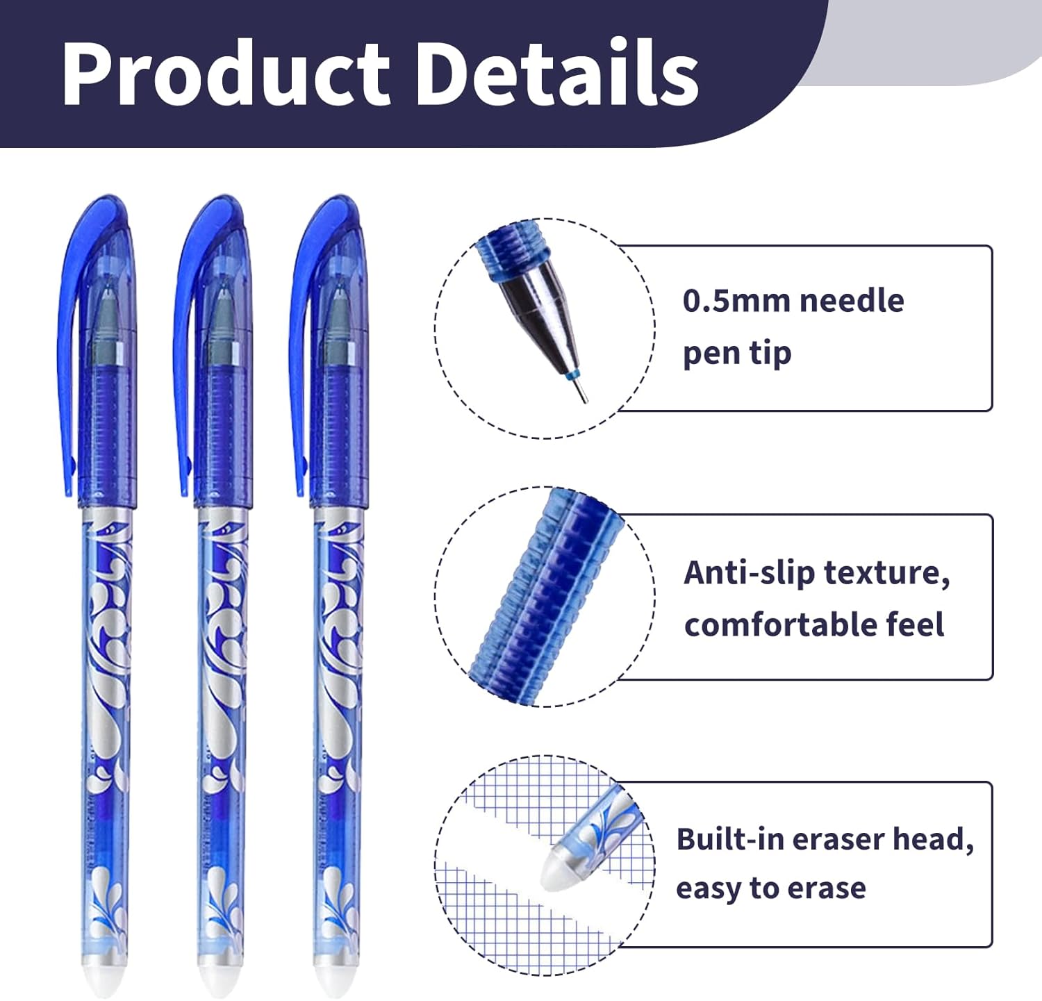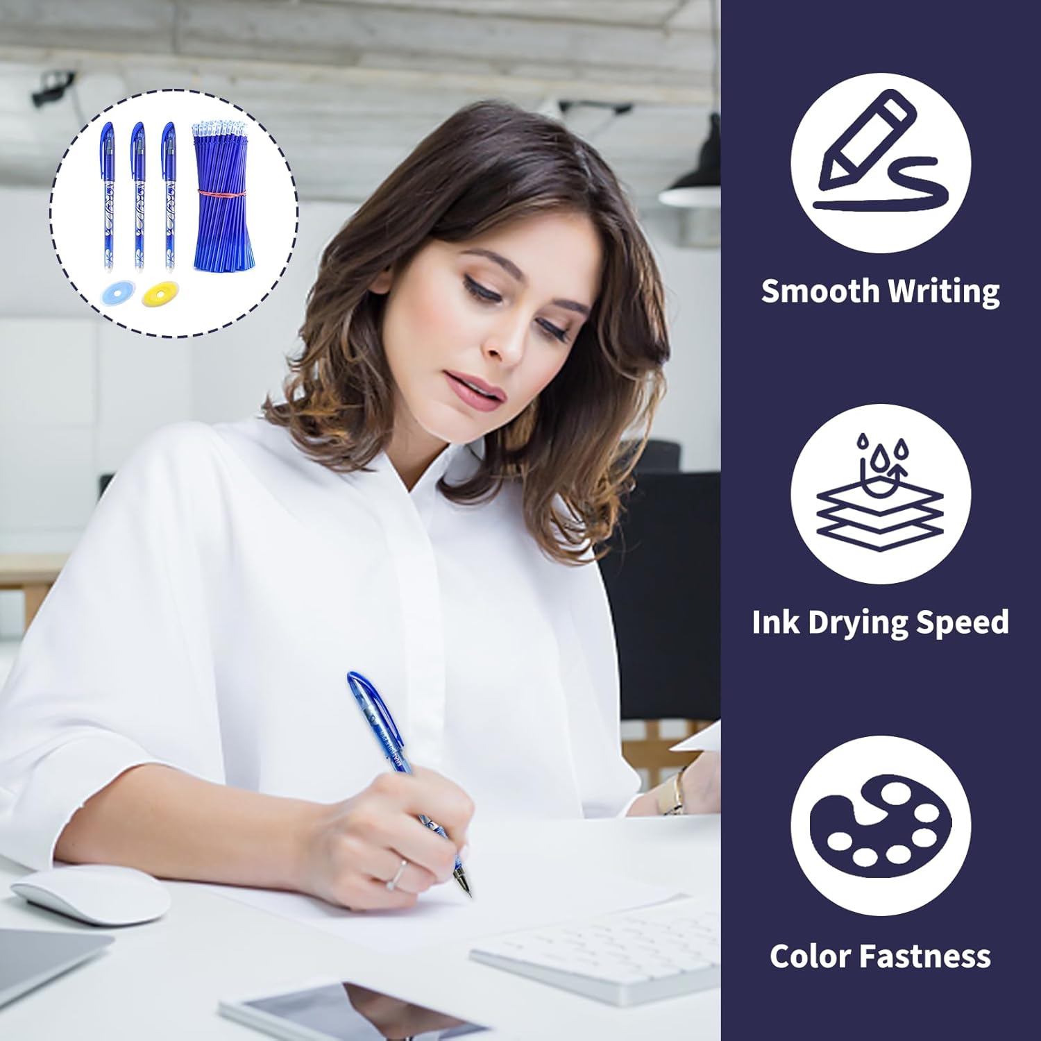 【Inchiostro Termosensibile per 】 Le penne cancellabili blu offrono un inchiostro termosensibile che scompare con il calore, permettendo correzioni rapide senza danneggiare i documenti. Perfette per appunti, bozze e scrittura quotidiana, senza lasciare tracce di cancellazione. 【Elevata Durabilità e Lunga Durata】 Ogni penne cancellabili blu contiene 1,3 grammi di inchiostro, capace di coprire fino a 400 metri di scrittura, garantendo una durata superiore rispetto ad altri prodotti simili. Meno necessità di sostituzioni frequenti, con un’ottima durata nel tempo. 【Ideale per Regalo】Le penne blu cancellabili sono facili da usare, sia per scrivere che per correggere. Il set può essere un ottimo regalo pratico per amici, familiari o colleghi che apprezzano la scrittura senza errori e correzioni facili, perfetto per ogni occasione. 【Kit Completo e Pratico】Il ricarica penne cancellabile blu include 50 ricariche blu da 0.5mm, 3 penne cancellabili e 2 gomme, fornendo tutto il necessario per scrivere, cancellare e riscrivere facilmente. Un kit completo per uso scolastico, professionale e quotidiano, perfetto per chi ama avere tutto a portata di mano. 【Versatilità per Ogni Occasione】 Ideale per una varietà di applicazioni, come scrittura quotidiana, lavori di sartoria, compiti scolastici e disegno, dove i segni devono essere rimossi facilmente. Le penne sono progettate per offrire una presa comoda e una scrittura fluida, riducendo la fatica durante l'uso prolungato.