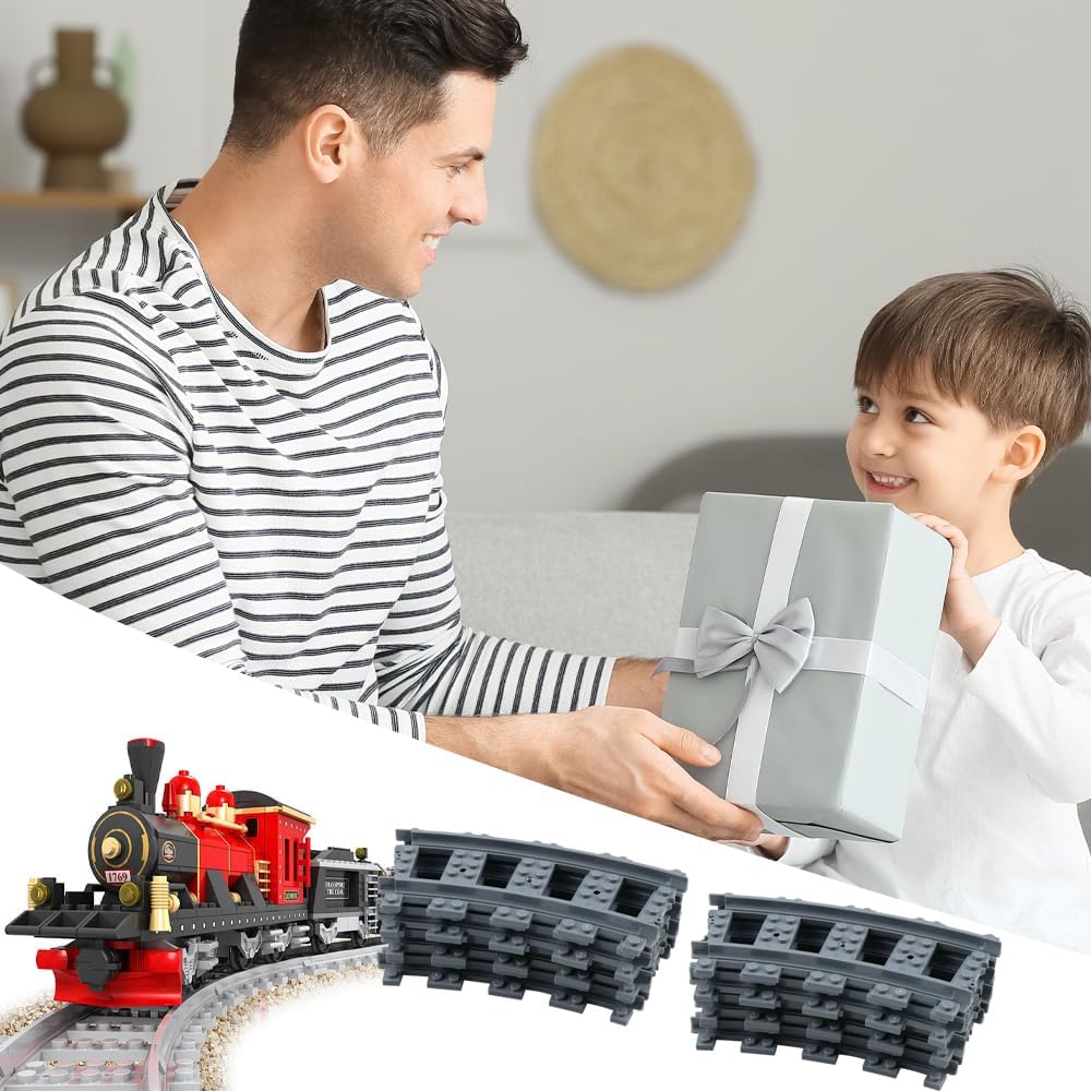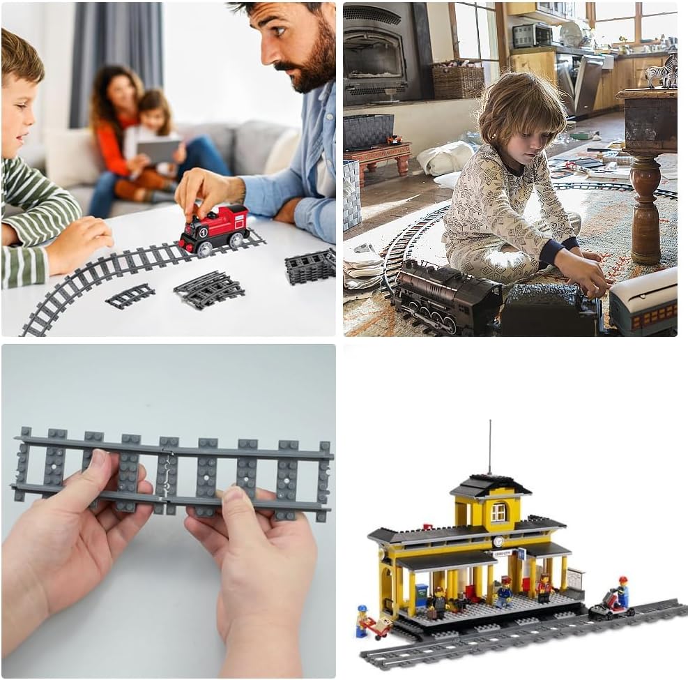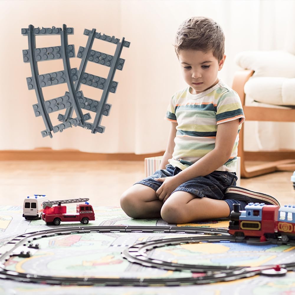 Set di guide incluse: 1 set da 40 pezzi,Les rails comprennent 32 rails courbes,1 croisement et 24 rails flessibili Materiale: set di binari realizzato in materiale ABS di alta qualità, sicuro e non tossico, resistente e può portare un divertimento senza fine per i bambini Forte compatibilità:I nostri binari sono compatibili con i principali marchi sul mercato e possono essere utilizzati anche con altri giocattoli da costruzione. Un'aggiunta perfetta al tuo sistema ferroviario urbano Elementi del binario: il binario può essere assemblato in diverse combinazioni o utilizzato come estensione aggiuntiva del binario; Il processo di assemblaggio incoraggia la manipolazione e l'innovazione Regali ferroviari per bambini:Sono abbastanza flessibili da consentire ai bambini di usarli e manipolarli, il che può portare un divertimento senza fine ai tuoi bambini. Questi binari sono regali perfetti per bambini per compleanni, riunioni di famiglia, Natale, Festa dei bambini e altro ancora
