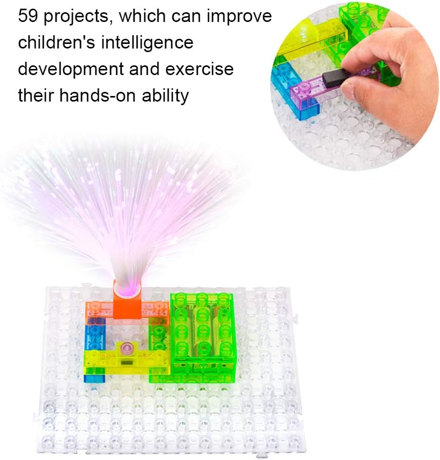 [Materiale sicuro] Realizzato con materiali ambientali per garantire la sicurezza dei bambini. [59 Progetti] offre una varietà di progetti per migliorare l'intelligenza e le abilità pratiche dei bambini. [Luci colorate] presenta luci vivaci per attirare e catturare l'attenzione dei bambini. [Protezione di sicurezza] Dotato di protezione da cortocircuito ad alta sicurezza per il benessere dei bambini. [Giocattolo versatile] sia per l'intrattenimento delle feste che per il gioco educativo quotidiano per i bambini.