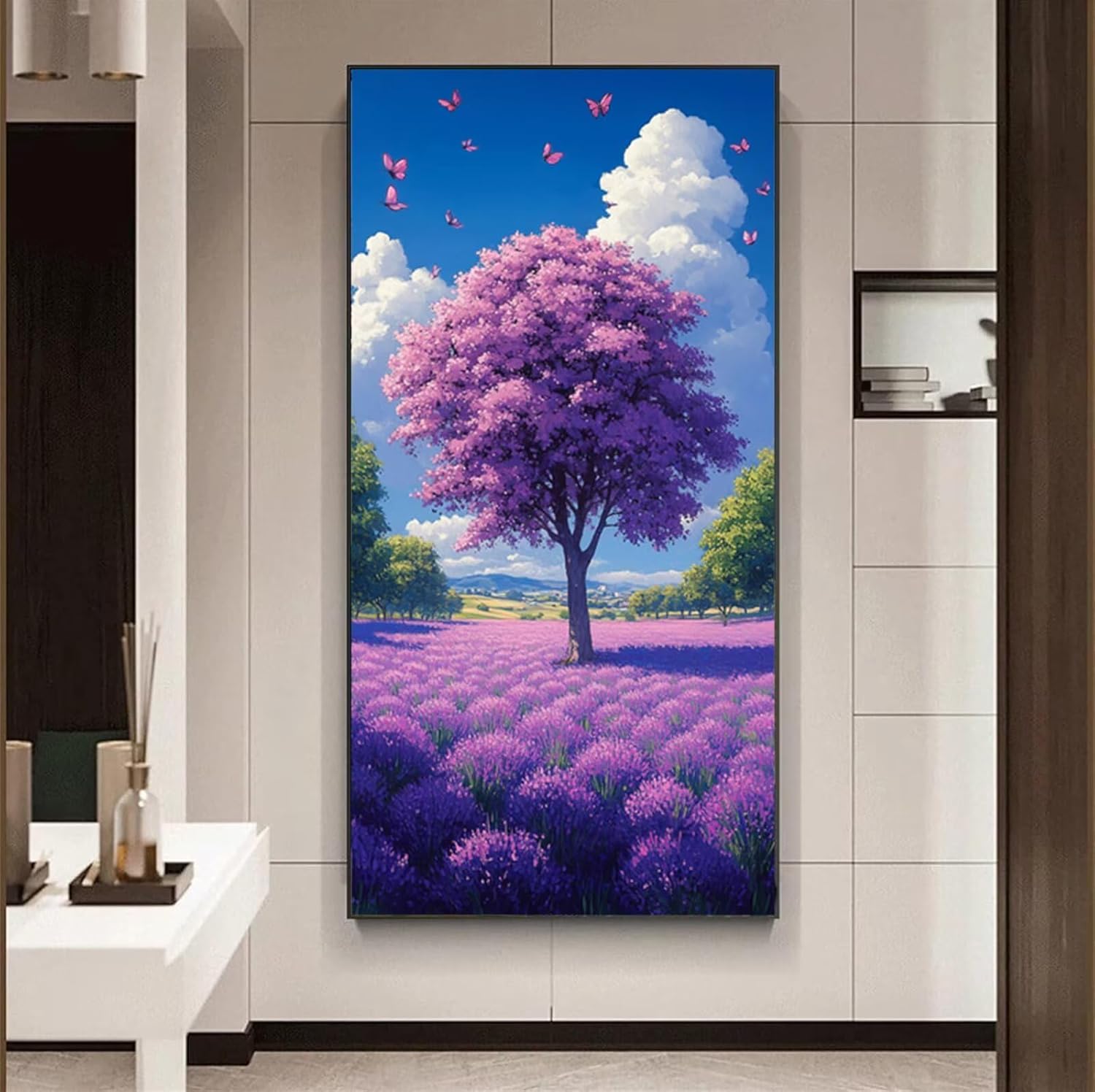 5D Albero Diamond Painting Kit Completo per Adulti Principianti, Lavanda Pittura Diamante Painting Kit Ricamo a Punto Croce Artigianale, DIY Diamantini Crystal Art per Decorazioni 30x60 cm o-2932