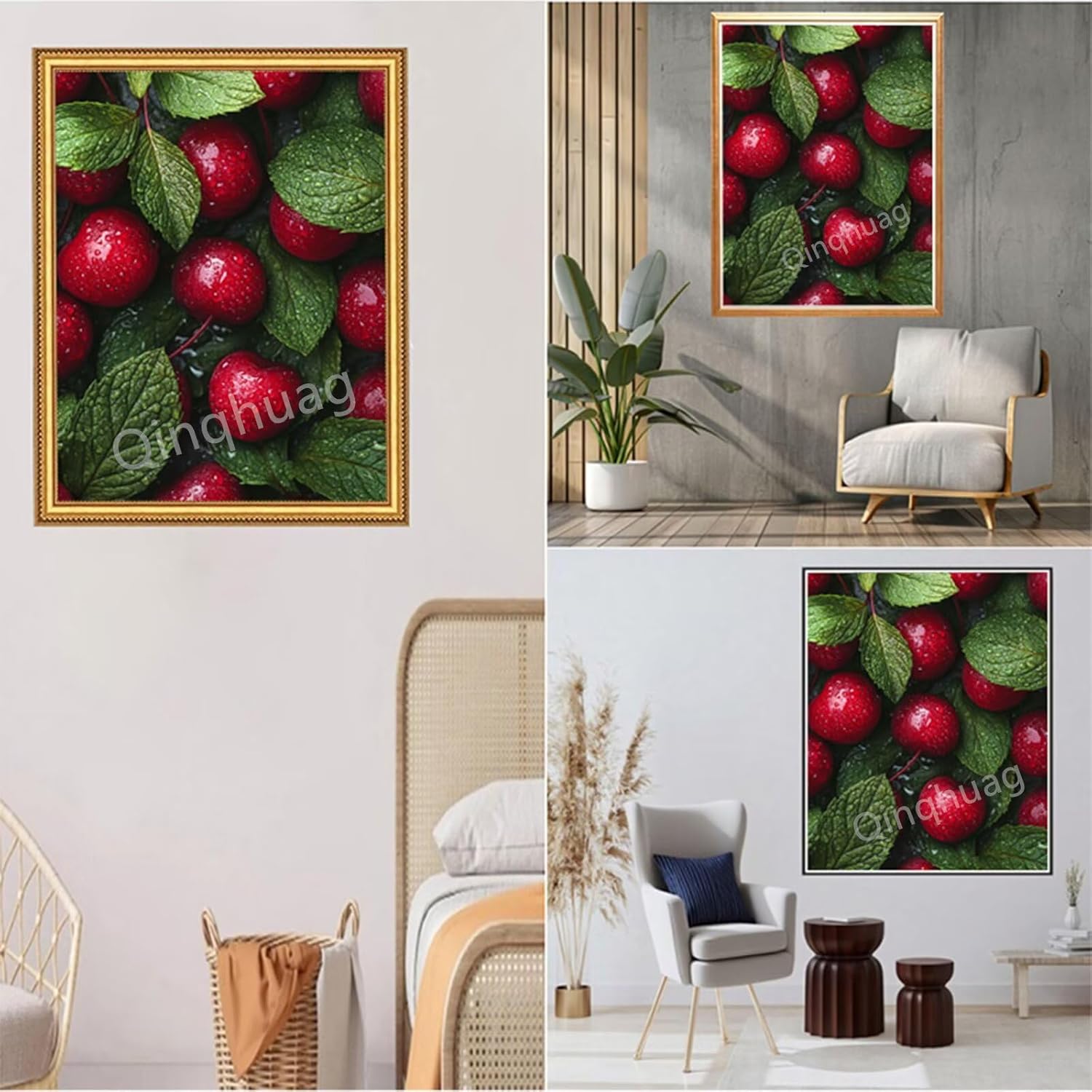 5D Ciliegia Diamond Painting Pianta Diamond Painting Kit Completo, Pittura Diamante Adulti Bambini Diamantini Crystal Art Strass Ricamo Punto Croce Arte Fai da Te, Decorazione Murale 60x80 cm Q4-942