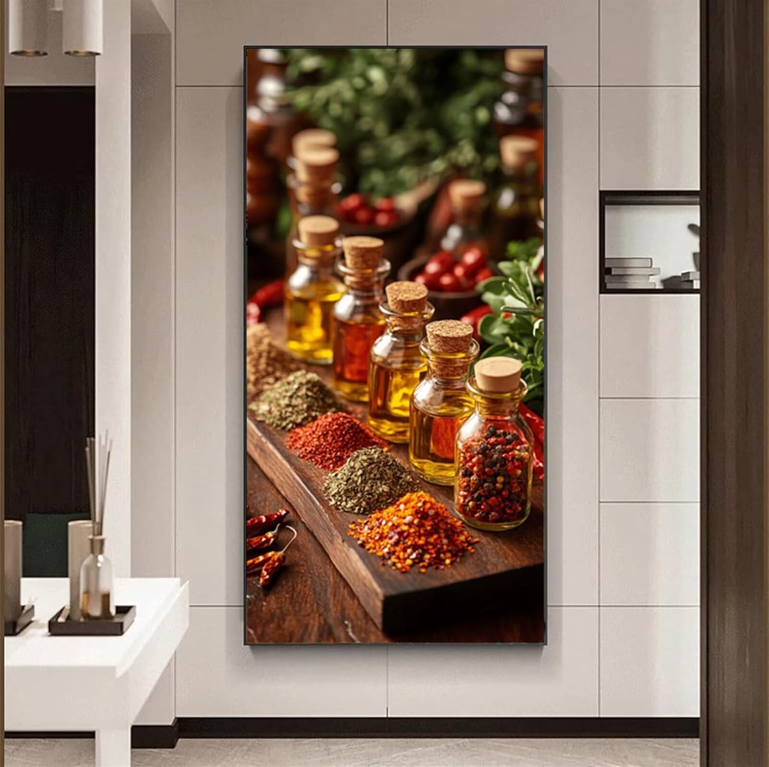 5D Cucina Diamond Painting Kit Completo per Adulti Principianti, Spezie Pittura Diamante Painting Kit Ricamo a Punto Croce, DIY Diamantini Crystal Art per Decorazioni da Parete e Casa 30x60 cm o-1832