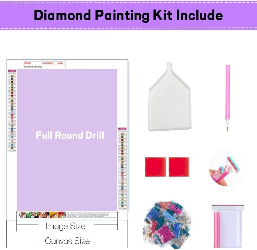 【Tela di Alta Qualità】 I nostri kit diamond painting utilizzano una tela di alta qualità: la tela è nitida, impermeabile e priva di pieghe, i simboli alfabetici sono chiari e facili da capire. Il codice DMC sulla tela corrisponde al colore del diamante, e la tela è dotata di una colla acquosa ecologica con una forte aderenza, garantendo che i diamanti non cadano. 【Rotondo Diamanti Completi】 Il kit di pittura diamante DIY è dotato di diamanti rotondo completi. I diamanti cubici presentano molte sezioni multifacciali. Sotto la luce, le perle brillano di più, e l'intera pittura assume una sensazione più tridimensionale e vivace, risultando più vibrante e brillante dei diamanti ordinari, e non si tanneranno mai. È la decorazione DIY più popolare. 【Decorazione Domestica Popolare】 Le pitture con diamanti hanno una ricca gamma di colori e un forte senso tridimensionale; i colori possono essere mantenuti per molti anni. Se ritieni che la decorazione della tua casa sia insipida e ordinaria, la pittura finita è un'opera murale perfetta per il soggiorno, la camera da letto o la sala da pranzo illuminerà sicuramente la tua stanza quando appesa al muro, e sarà un regalo divertente e fantastico per la tua famiglia, parenti o amici. 【Aggiungi Più Divertimento Alla Vita】 Il diamond painting kit è un ottimo prodotto per gli adulti per rilassarsi. Completando questo bel kit di pittura con gemme per adulti, puoi sperimentare un senso di realizzazione e coltivare la pazienza, permettendoti di sentire la gioia di creare e di scoprire cosa significa essere un pittore. Anche se sei un principiante, questo kit di pittura con diamanti per principianti è facile da completare. 【Servizio Post-Vendita】 Se riscontri problemi dopo aver ricevuto il kit di pittura diamant, come diamanti o utensili mancanti, contattaci immediatamente via email e risponderemo per risolvere il problema nel minor tempo possibile.