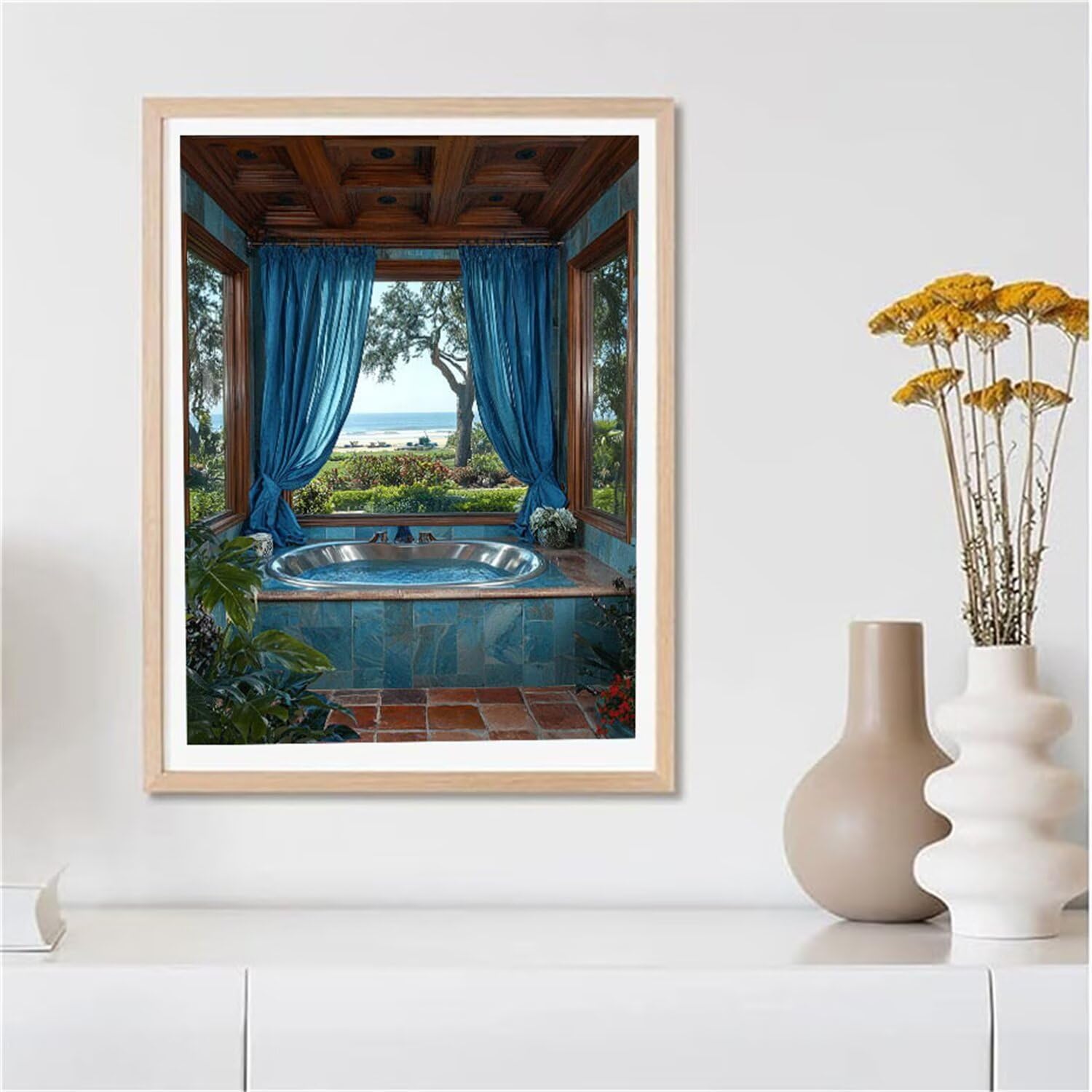 5D Diamond Painting Finestra, Vasca Da Bagno Diamond Painting Kit Completo, Passatempo per Adulti Principianti, Diamantini Crystal Art Bambini, Strass Ricamo Punto a Croce, Decor Interna 90x120cm A-24