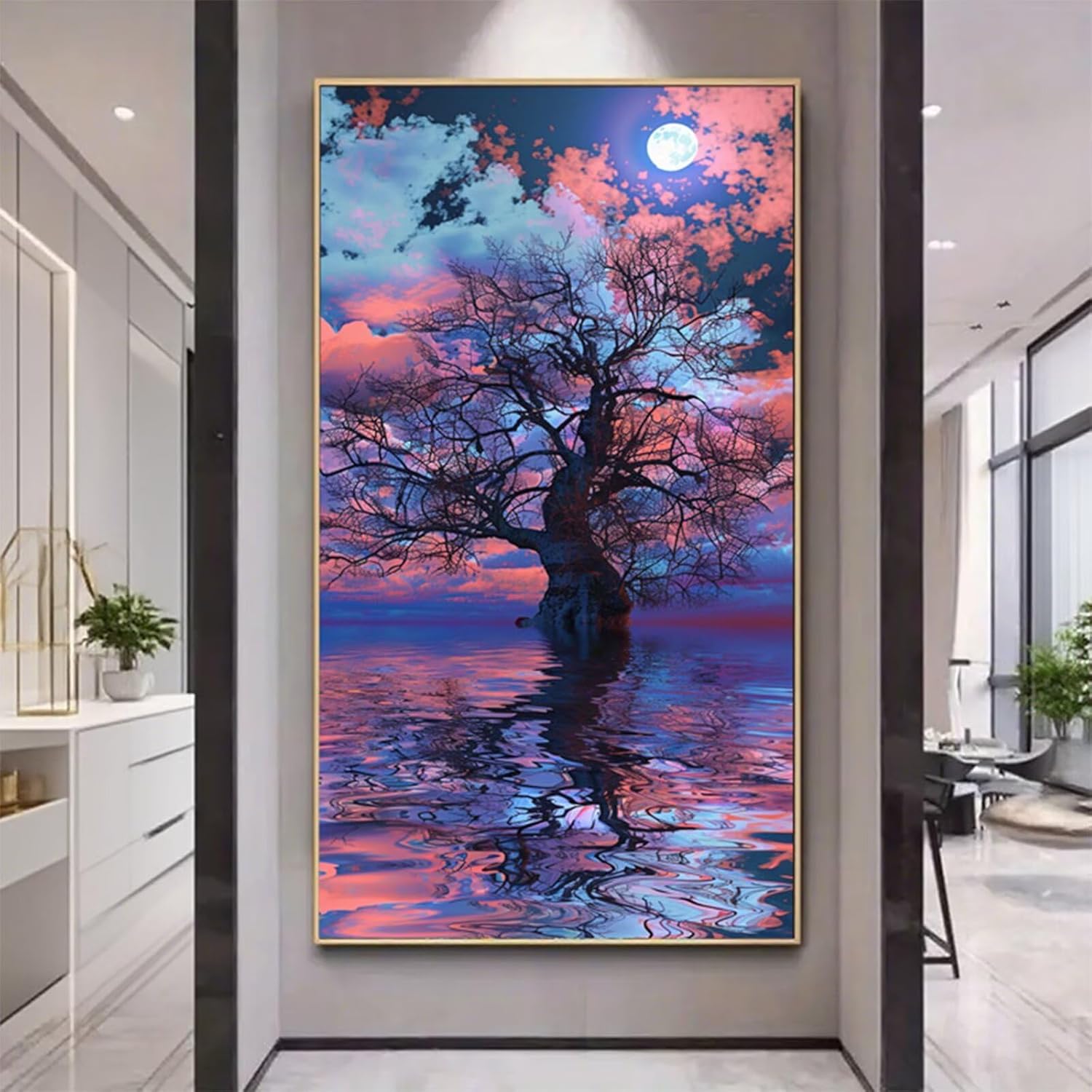 5D Diamond Painting Kit Completo Albero Diamond Painting Luna Pittura Diamante Adulti, Mosaico Quadri con Perline, DIY Diamantini Crystal Art Hobby Creativi Adulti, Decorazioni Casa 180x90cm X2-1175