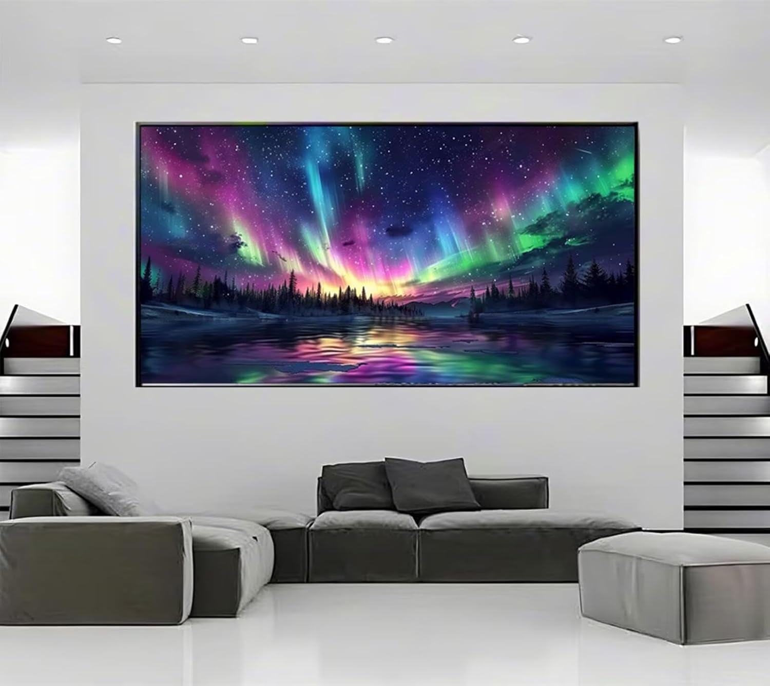 5D Diamond Painting Kit Completo Aurora Diamond Painting Grandi Dimensioni 70x140 cm, Diamantini Crystal Art Kit Pittura Adulti, DIY Lago Strass Ricamo a Punto Croce per Adulti Decorazione c-1657