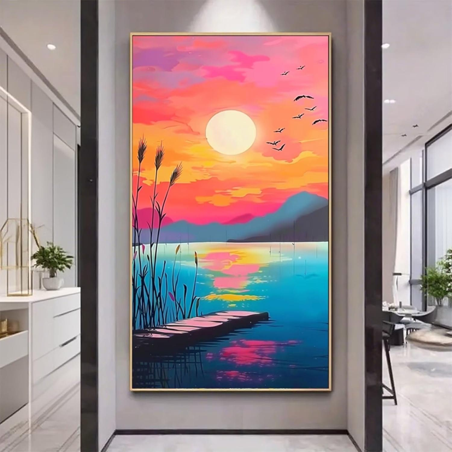 5D Diamond Painting Kit Completo Cielo Diamond Painting Lago Pittura Diamante Adulti, Mosaico Quadri con Perline, DIY Diamantini Crystal Art Hobby Creativi Adulti, Decorazioni Casa 160x80cm X2-1255