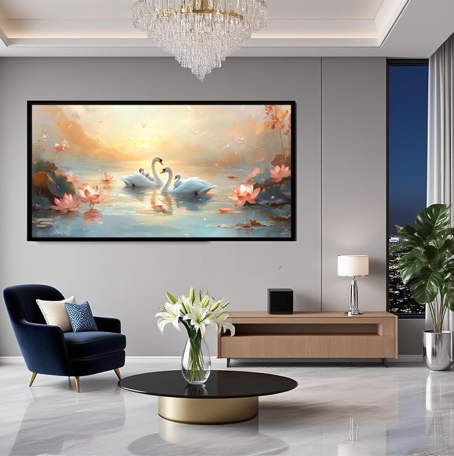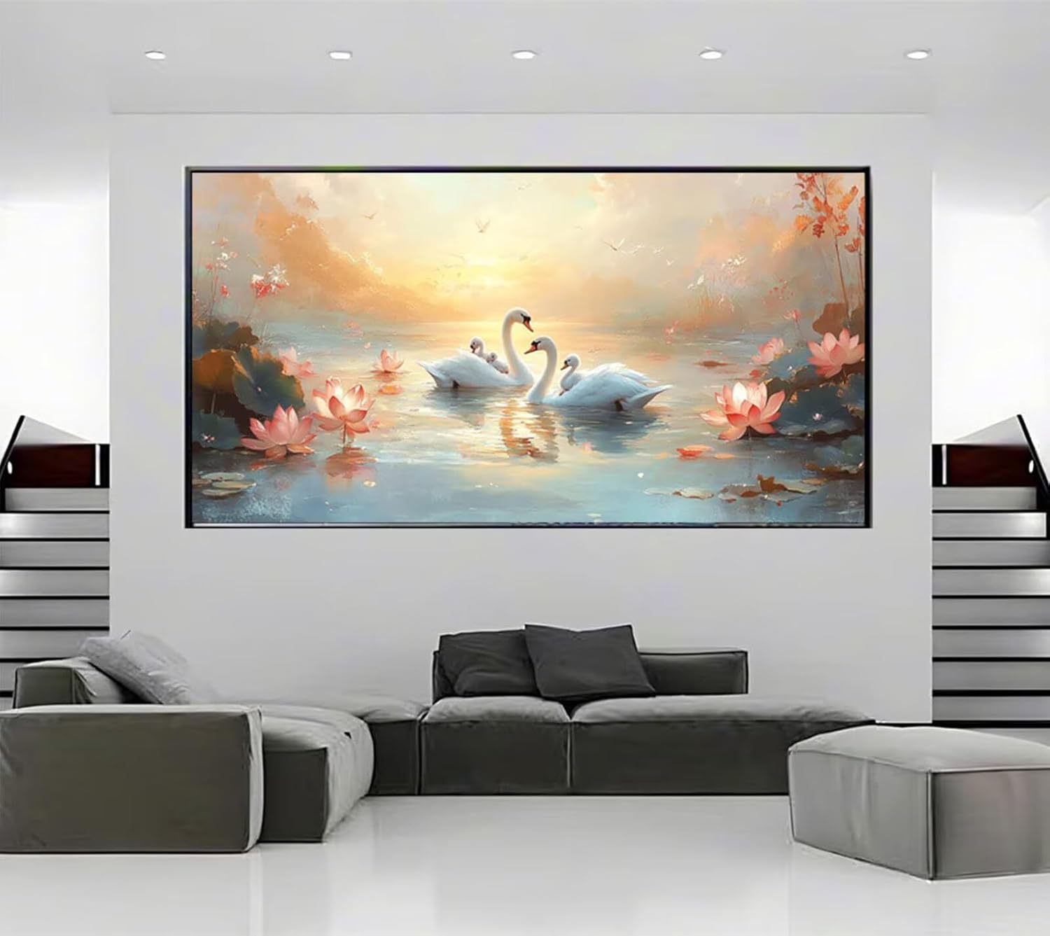 5D Diamond Painting Kit Completo Cigno Diamond Painting Grandi Dimensioni 140x70 cm, Diamantini Crystal Art Kit Pittura Adulti, DIY Lago Strass Ricamo a Punto Croce per Adulti Decorazione c-8137