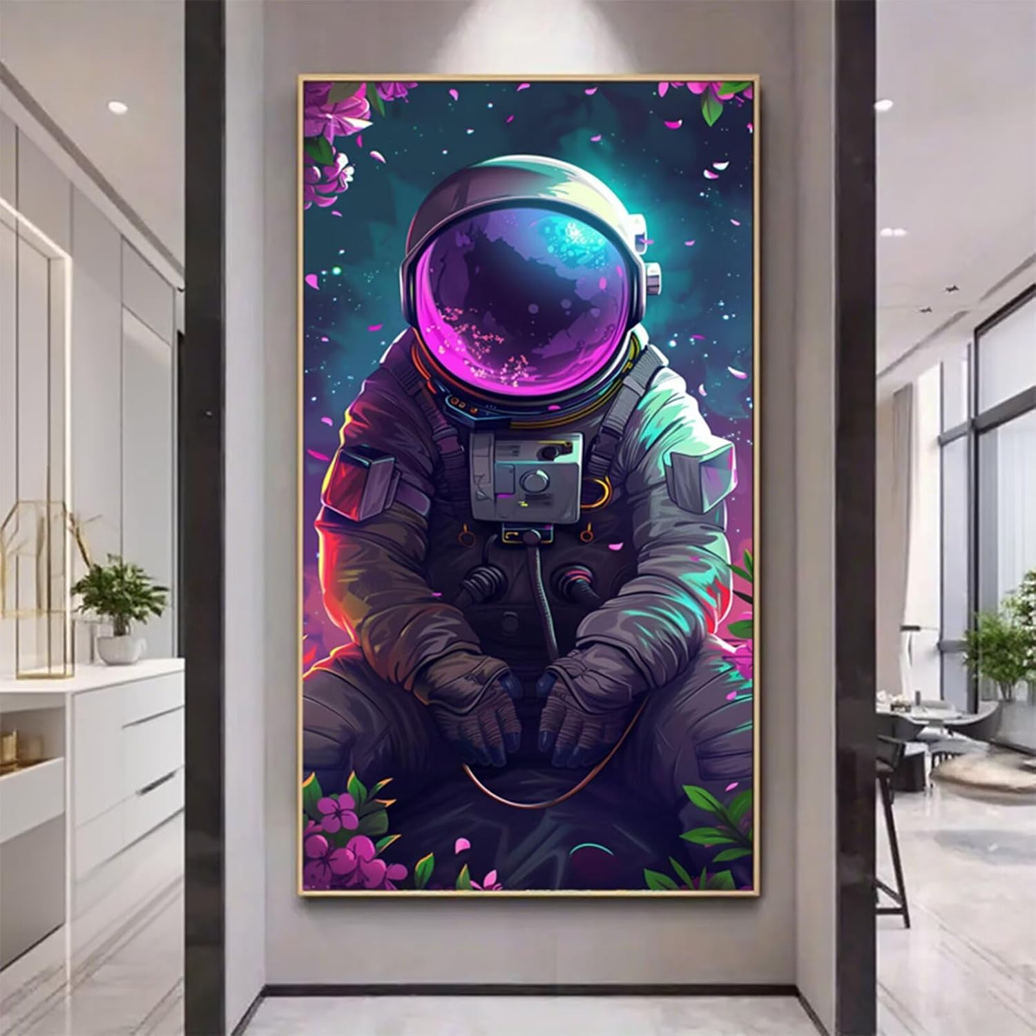 5D Diamond Painting Kit Completo Fiore Diamond Painting Astronauta Pittura Diamante Adulti,Mosaico Quadri con Perline,DIY Diamantini Crystal Art Hobby Creativi Adulti,Decorazioni Casa 60x30cm X2-1145