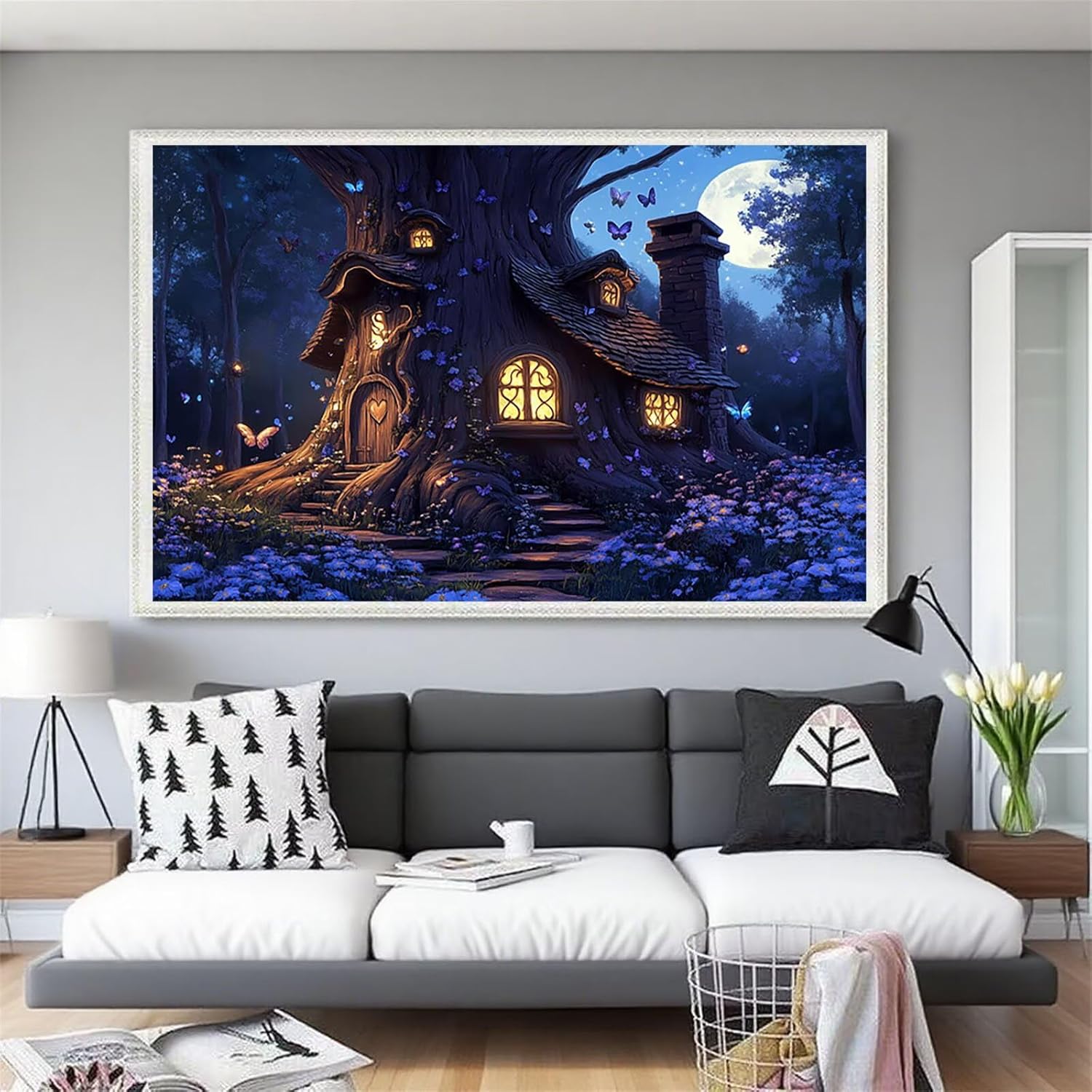 5D Diamond Painting Kit Completo Foresta Diamond Painting Bambina, Kit di Pittura Diamante Cabina Passatempo per Adulti, DIY Diamantini Crystal Art Hobby Creativi Adulti, Decorazioni 60x80 cm K-7658