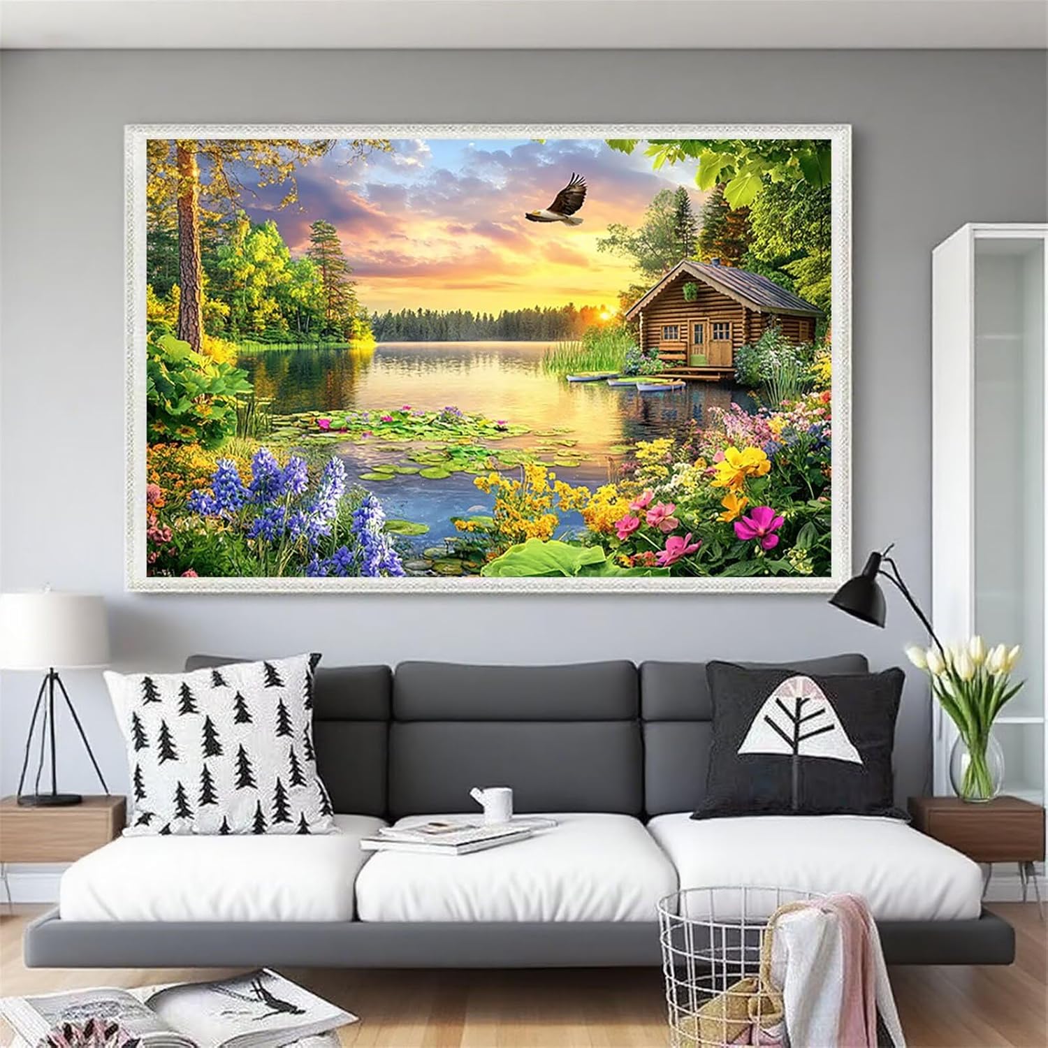 5D Diamond Painting Kit Completo Lago Diamond Painting Bambina, Kit di Pittura Diamante Fiore Passatempo per Adulti, Diamantini Crystal Art Hobby Creativi Adulti, Decorazioni per Casa 40x50 cm K-7975
