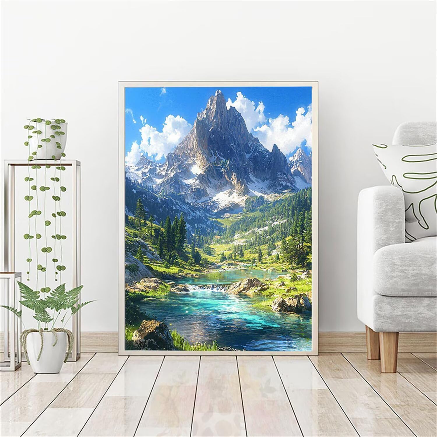 5D Diamond Painting Montagna, Verde Diamond Painting Kit Completo, Passatempo per Adulti Principianti, Diamantini Crystal Art Bambini, Strass Ricamo Punto a Croce, Decorazione Interna 100x150cm A-402