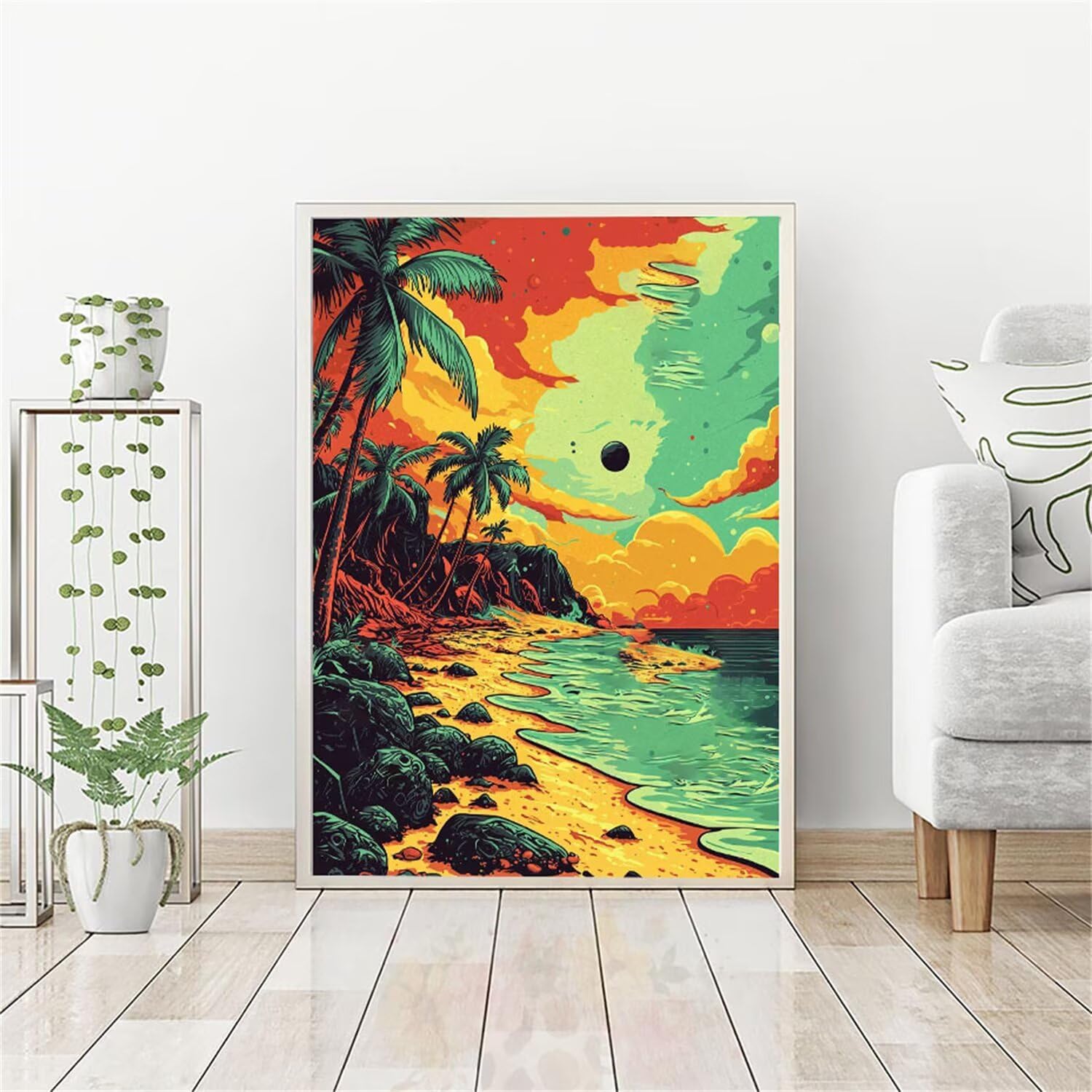 5D Diamond Painting Spiaggia, Albero Diamond Painting Kit Completo, Passatempo per Adulti Principianti, Diamantini Crystal Art Bambini, Strass Ricamo Punto a Croce, Decorazione Interna 60x90cm A-106