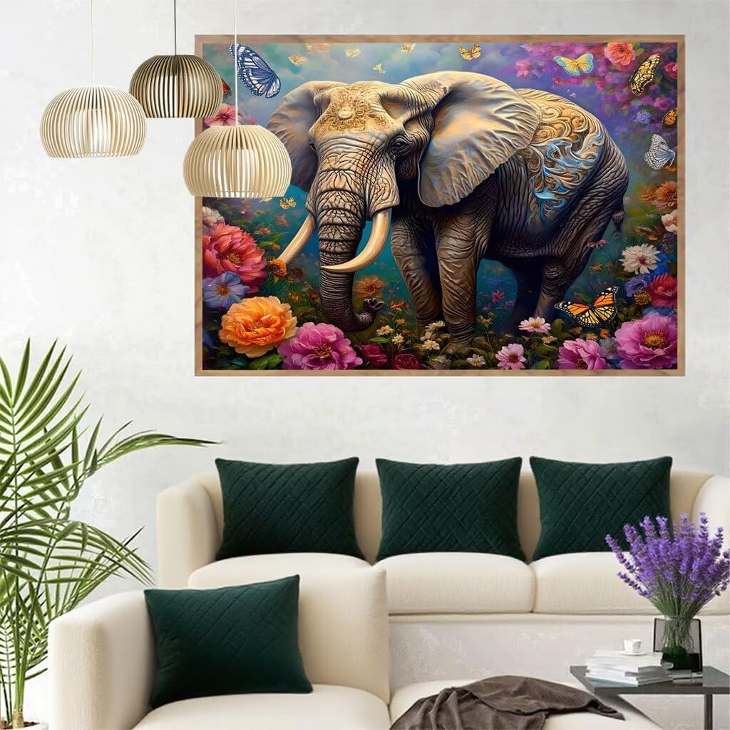 5D Elefante Diamond Painting Fiore Diamond Painting Kit Completo, Pittura Diamante Adulti Bambini Diamantini Crystal Art Strass Ricamo Punto Croce Arte Fai da Te, Decorazione Murale 15x20 cm Q4-1308