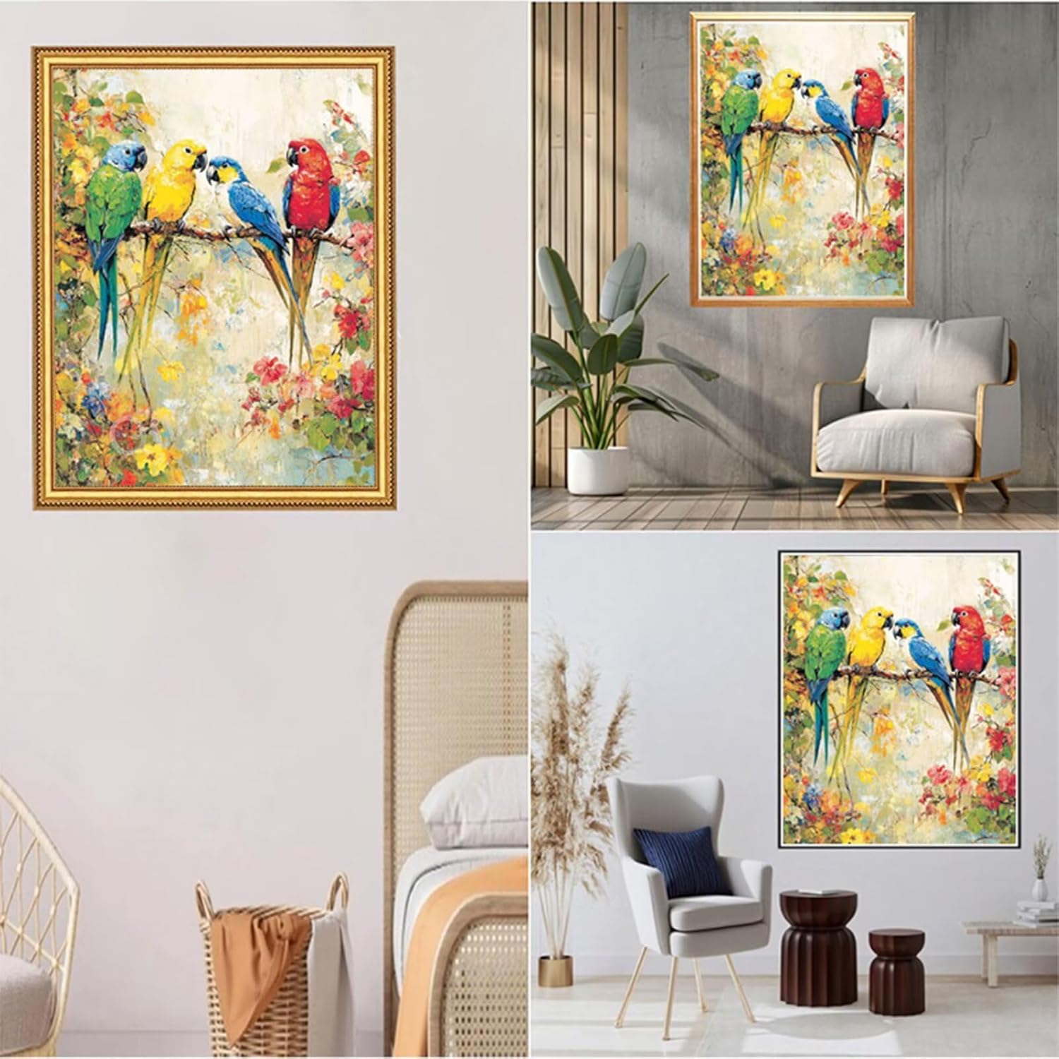 5D Fiore Diamond Painting Pappagallo Diamond Painting Kit Completo, Pittura Diamante Adulti Bambini Diamantini Crystal Art Strass Ricamo Punto Croce Arte Fai da Te, Decorazione Murale 80x100 cm Q4-684
