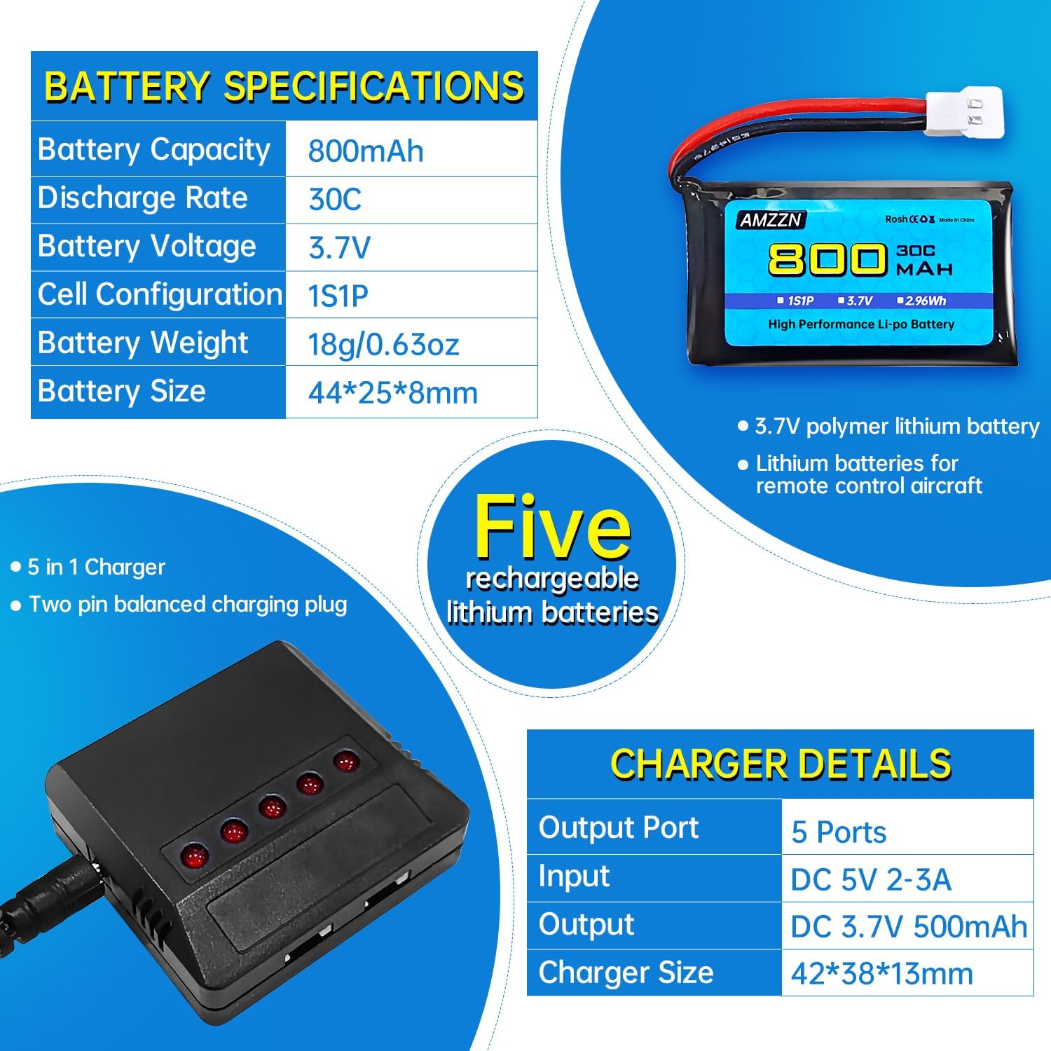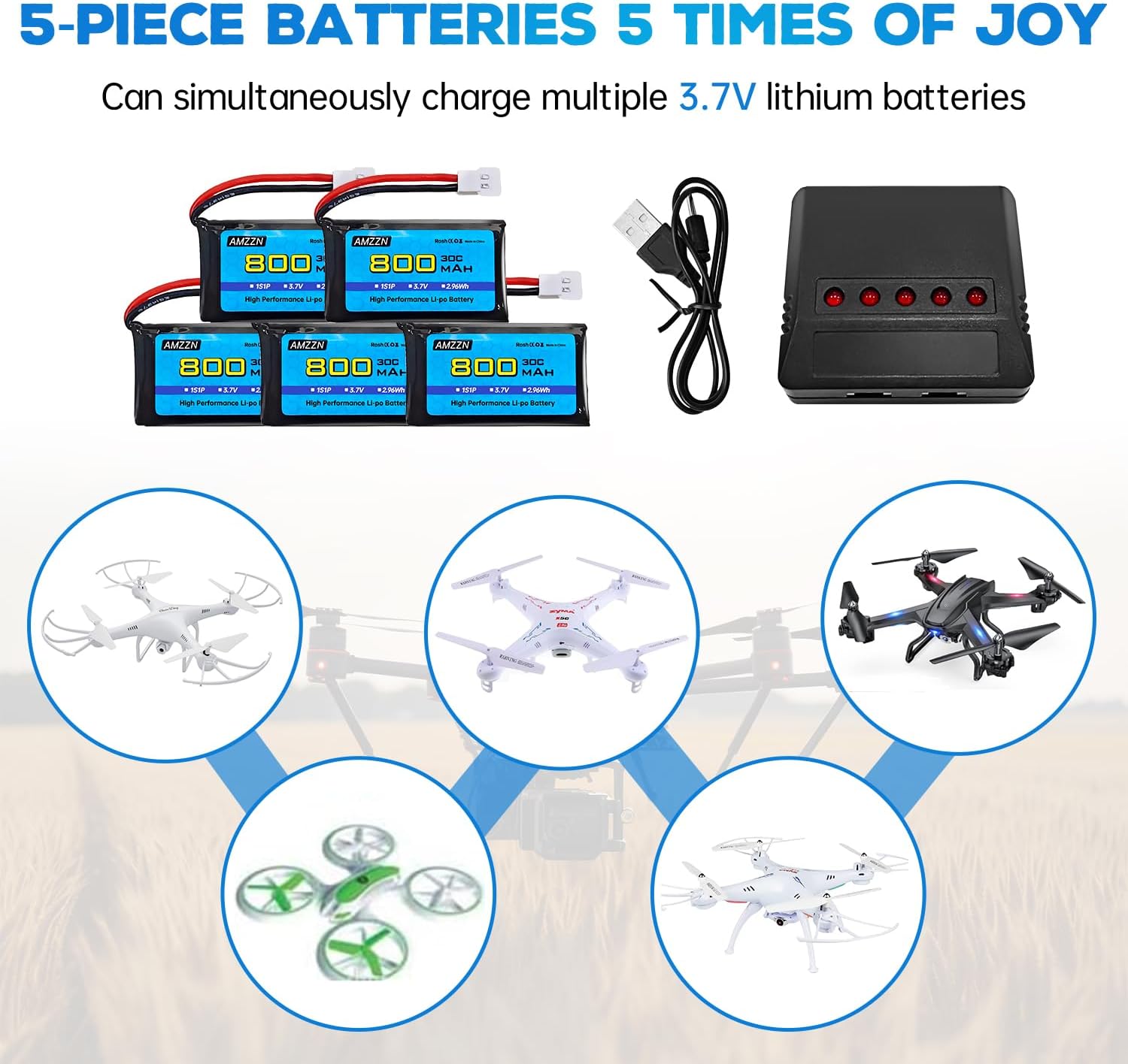 ☆Parametro: Tensione della batteria: 3.7V; Tasso di scarico: 30C; Capacità: 800mAh; Dimensione: 44 * 25 * 8mm/1.73 * 0.98 * 0.31 pollici; Peso: 18g/0.63oz; Spina di scarico: Molex 51005; Spina di ricarica: Molex 51005. ☆Applicazione: Compatibile con Syma X5C X5C X5C-1 X5SC X5SW H5C V931 S5C S5W SS40 FQ36 CW4 UFO 3000 UDI U45 U45W T5W T32 H42 SS40 GoolRC T32 drone di controllo remoto. (Può essere installato solo quando la tensione, la dimensione e la spina corrispondono). ☆Maggiore potenza: 5PCS 800 mAh Lipo batteria caricabatteria fornisce potenza in qualsiasi momento. La batteria RC fornisce una velocità di scarica, spingendo il tempo di funzionamento del drone RC alla sua capacità di picco. ☆Indicatore di carica: Quando il cavo di ricarica è collegato all'alimentazione elettrica e la batteria è carica, la spia rossa dell'indicatore di carica si accende sempre; La luce rossa completamente carica si spegne. ☆L'imballaggio include: batteria al litio 5X3.7V 800mAh, caricatore 1X5-In-1, manuale utente 1X e scatola di imballaggio squisita 1X. Aderiamo al principio del cliente in primo luogo e potete contattare il servizio clienti non appena avete domande.