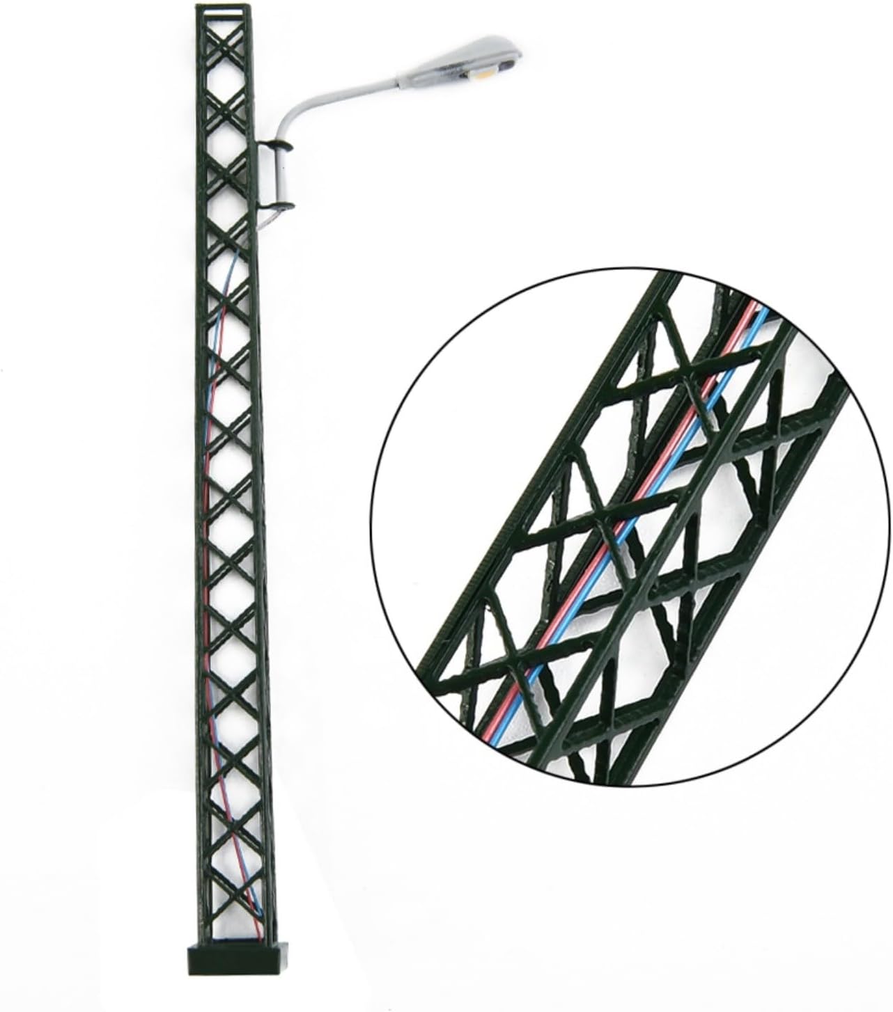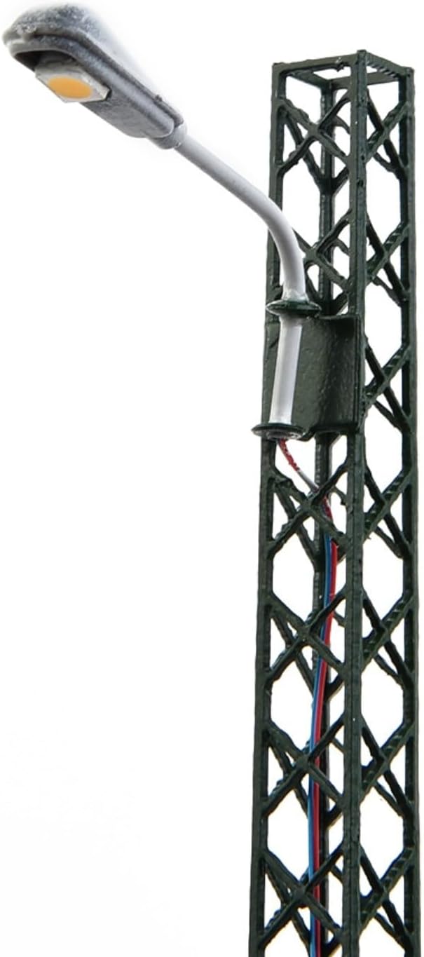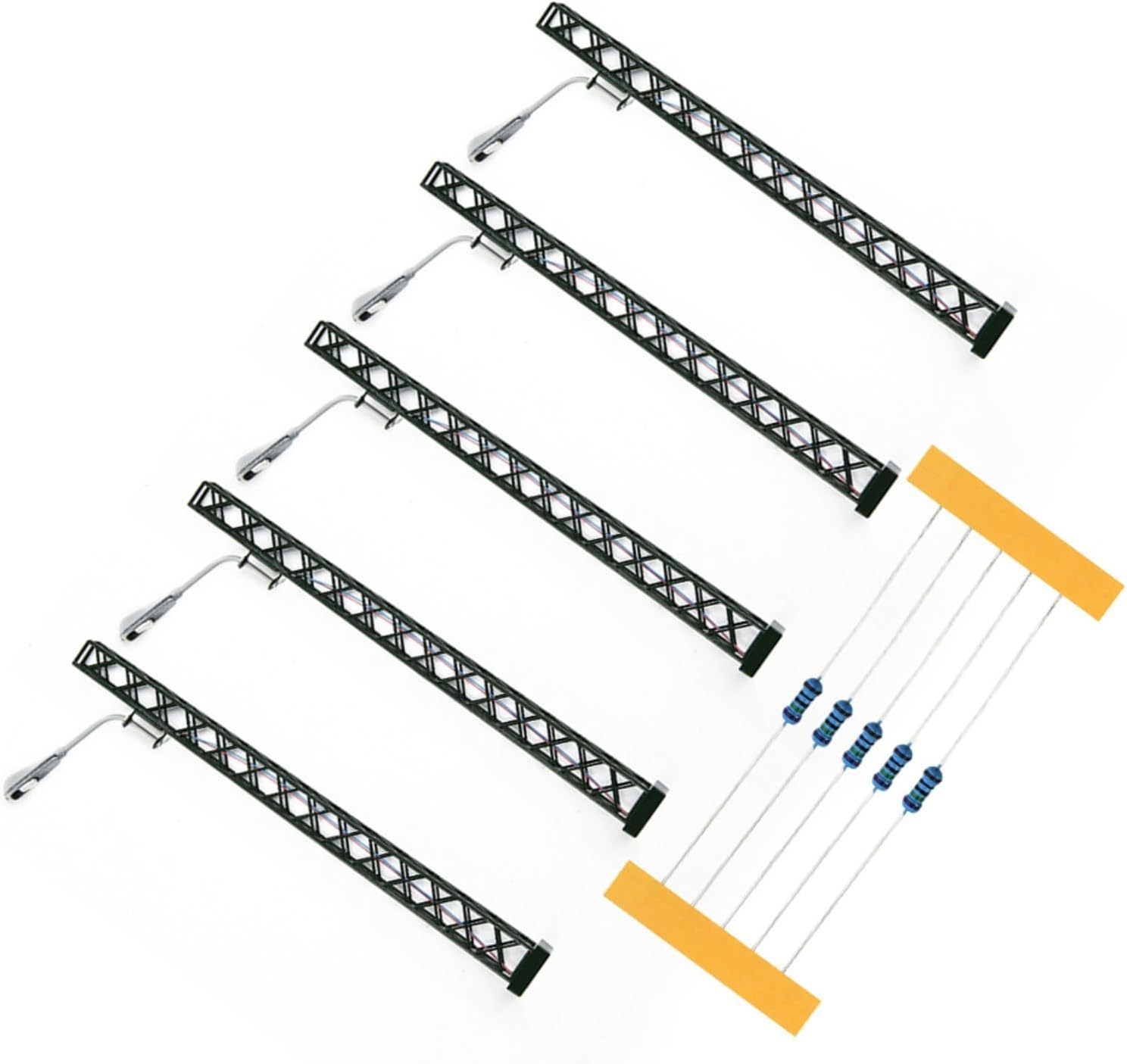 Luci di alta qualità: queste 5 luci ferroviarie modello sono realizzate con materiali plastici di alta qualità e tecnologia LED, perfette per migliorare il layout dei treni H0. Ogni lampada offre un'illuminazione chiara e costante che porta realismo realistico al tuo mondo in miniatura pur essendo di lunga durata per un divertimento continuo. [Scala perfetta per calibro H0]: progettate in scala 1:87, queste luci a traliccio si integrano perfettamente con i modelli ferroviari e paesaggi standard H0. Il loro design autentico imita l'illuminazione stradale del mondo reale, aggiungendo profondità e dimensione alle scene o ai diorami dei tuoi modellini ferroviari. Opzioni di collegamento versatili: ogni lampada funziona a 3 V DC o AC con amperaggio 20 mA, consentendo un'integrazione flessibile con la configurazione esistente. La confezione include resistenze in serie per un collegamento sicuro a trasformatori da 12-16 V, assicurando il corretto funzionamento senza danneggiare i LED. Facile installazione: queste luci modello sono dotate di installazione semplice con il loro design pronto all'uso. Basta posizionarli strategicamente in tutto il layout ferroviario o negli edifici in miniatura per creare effetti di luce suggestivi che trasformano il tuo mondo modello, particolarmente impressionante in condizioni di scarsa illuminazione. [Miglioramento dettagliato della ferrovia]: trasforma i layout ordinari in spettacolari display con queste luci realistiche a traliccio. Sono perfetti per illuminare stazioni, piattaforme, strade e incroci nella scena ferroviaria modella, creando un'esperienza coinvolgente per gli spettatori e aggiungendo dettagli dall'aspetto professionale al tuo capolavoro hobby.