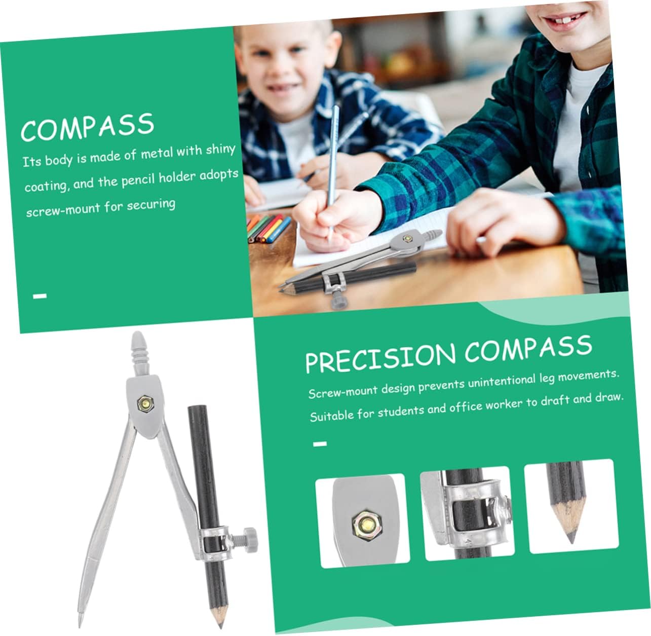 Bussola a matita: questo pratico kit bussola può soddisfare le tue esigenze di e lavoro, offrirti molta più comodità, bussola geometrica Bussola per disegnare cerchi: le punte rigide della bussola possono contrassegnare con precisione il pezzo, ideale per disegnare archi, cerchi, linee di divisione, segmenti di , ecc., bussola per studenti Strumento per disegnare cerchi: questa bussola matematica può aprirsi e chiudersi senza problemi, con alta precisione, per piegare o rompere la bussola geometrica portatile Bussola per studenti: questa bussola è molto utile, non facile da rompere e può aiutarti a disegnare un cerchio standard, la geometria della bussola Bussola da disegno: questa e bussola per soddisfare le tue esigenze di lavoro e , bussola matematica