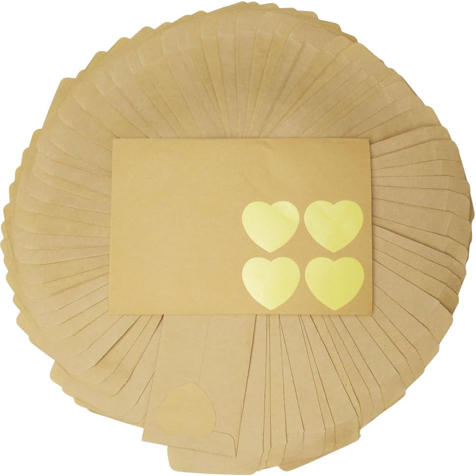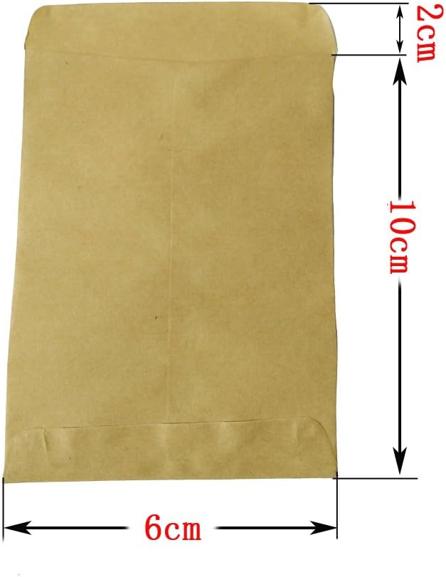 MateMaterial: carta kraft spessa, buona tenuta Dimensioni: circa 6*10 cm, circa 1,5 cm nell'area di saldatura, siamo dotati di 10 fogli 120 adesivi di carta kraft a forma di cuore da 4,5 cm, per sigillare sacchetti di carta Busta rettangolare, facile da trasportare Puoi usarla per adattare gioielli, cartoline, carte bancarie, biglietti di auguri, ecc. Adatto per caricare semi di cereali, mais, frumento, colza, riso, sorgo, girasole, verdure, ecc.
