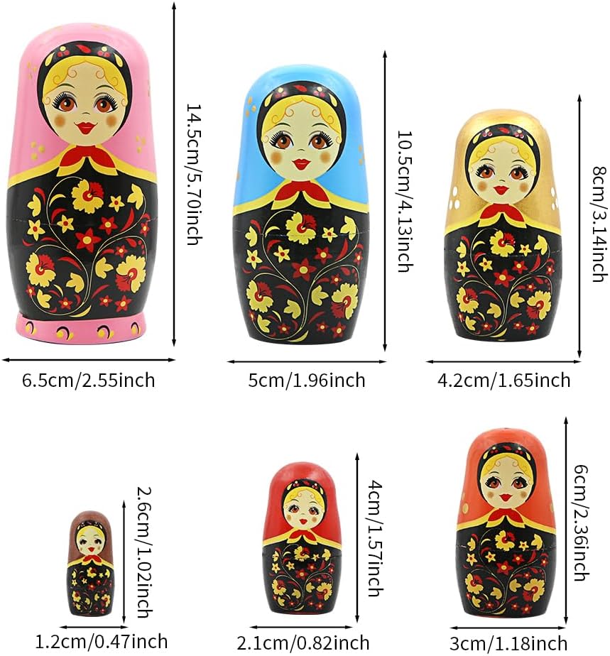 Ogni strato della bambola ha diverse dimensioni e colori. Questo interessante set di bambole rappresenta un motivo speciale di una ragazza che indossa una sciarpa blu scuro e abiti tradizionali. Le guance rosse e i dolci sorrisi sono molto popolari tra i bambini. È disponibile in 6 bambole estraibili multicolori, la dimensione è decrescente. Il più piccolo è posizionato all'interno dell'altro più grande. Il fondo è piatto, che consente di tenerlo dritto. Realizzato in legno di alta qualità, fatto a mano, squisito, dipinto a mano, sicuro e senza odore pungente. Può essere utilizzato per molto tempo. 🎁 Le nostre bambole in legno utilizzano colori vivaci per aiutare i bambini a riconoscere i colori e possono anche migliorare la loro consapevolezza dei colori e dei diversi motivi. Quando i bambini impilano e aprono bambole, possono anche sviluppare le loro capacità motorie e promuovere il loro sviluppo precoce. Applicazione ideale per la decorazione della casa o delle feste. L'interno della bambola estraibile è vuoto e può essere utilizzato per mettere piccoli snack, oggetti vari, gioielli, caramelle, ecc. Regalo squisito per genitori, amici e bambini. Un regalo speciale per Pasqua, Natale, festa dei bambini, compleanno, vacanze invernali. , nuovo anno e così via.