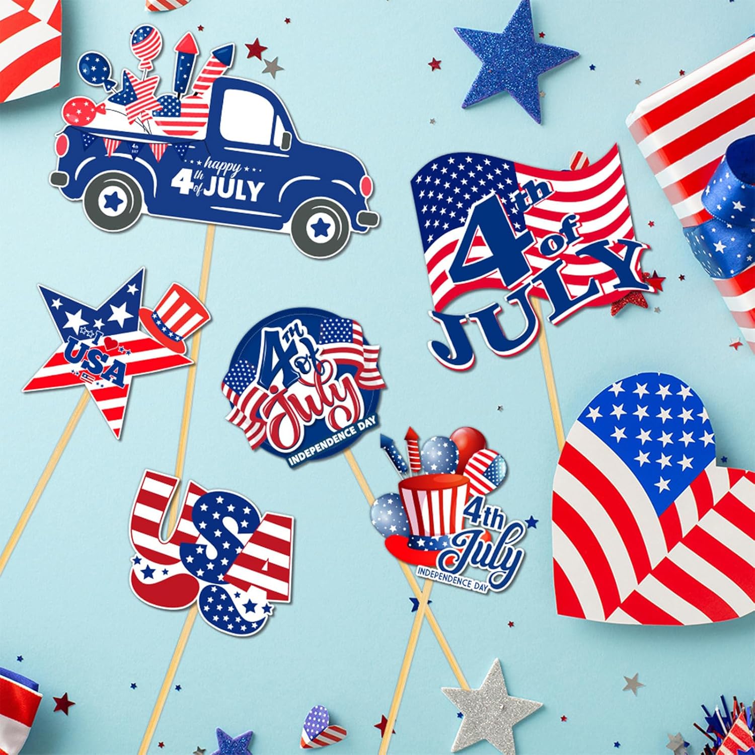 Realizzate in carta robusta, queste bandiere sono robuste, il che le rende adatte sia per uso interno che esterno in qualsiasi condizione atmosferica Festeggia il giorno dell'indipendenza con il nostro set di 6 bandiere decorative, progettate per migliorare le tue atmosfere di festival con colori vivaci e spiriti patriottici Facile da installare e riporre, questo set di bandiere è un'aggiunta multifunzionale alle tue forniture per feste, garantendo che il tuo evento si distingua con stile e fascino Per riunioni del Giorno dell'Indipendenza, barbecue all'aperto e vetrine dei negozi, queste bandiere aggiungono un tocco di patriottismo a qualsiasi ambiente Ideale per gli appassionati di decorazioni natalizie, organizzatori di feste e aziende che cercano di creare una celebrazione memorabile