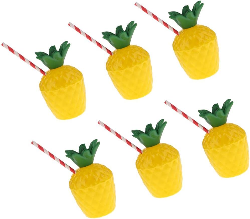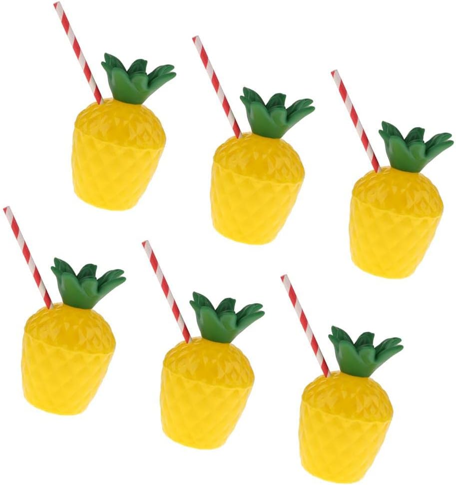 Set di 6 bicchieri a forma di frutta tropicale con cannucce Realizzato in PVC di alta qualità, resistente e riutilizzabile Dimensioni della tazza di cocco: altezza 14 cm, diametro 10,5 cm Dimensioni tazza ananas: altezza 14 cm, diametro 9 cm Perfetto per feste estive in spiaggia, hawaiano Luau e compleanni dei bambini