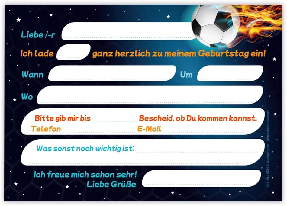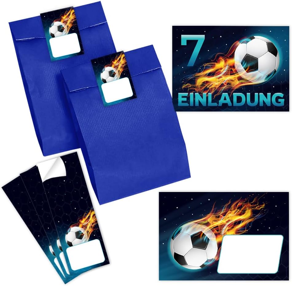 CONTENUTO: 6 biglietti d'invito + 6 buste + 6 sacchetti regalo/blu + 6 adesivi PRATICO: con questo set avrai non solo inviti con buste abbinate, ma anche sacchetti regalo per regali e fantastici adesivi regalo da scrivere. CARTE: gli inviti sono moderni e curati nei dettagli. Sul retro troverai i campi prestampati da compilare. I biglietti d'invito sono molto stabili, hanno formato A6 (10,50 cm x 14,80 cm), stampa di immagini di alta qualità da 300 g/m² e sono rivestiti con vernice UV per la finitura. BUSTE AUTOADESIVE: la busta ha una dimensione di 11,40 cm x 16,20 cm, stampa 80 g/m ed è autoadesiva (con strisce staccabili). BUSTE REGALO: le buste di carta misurano 12 x 19 cm. I sacchetti per feste sono molto adatti per confezionare piccole bomboniere o dolci per gli ospiti. ADESIVI: gli adesivi misurano 5,2 x 14,8 cm. Tu o tuo figlio potete scrivere "Grazie" e "Piacere che tu fossi lì!" sugli adesivi. oppure scrivi il nome dell'ospite. OCCASIONE: il set da festa è molto adatto per una festa di compleanno o una festa di compleanno. Puoi utilizzare questi biglietti anche come inviti a battesimi, feste notturne, feste a tema, cinema o feste in piscina.