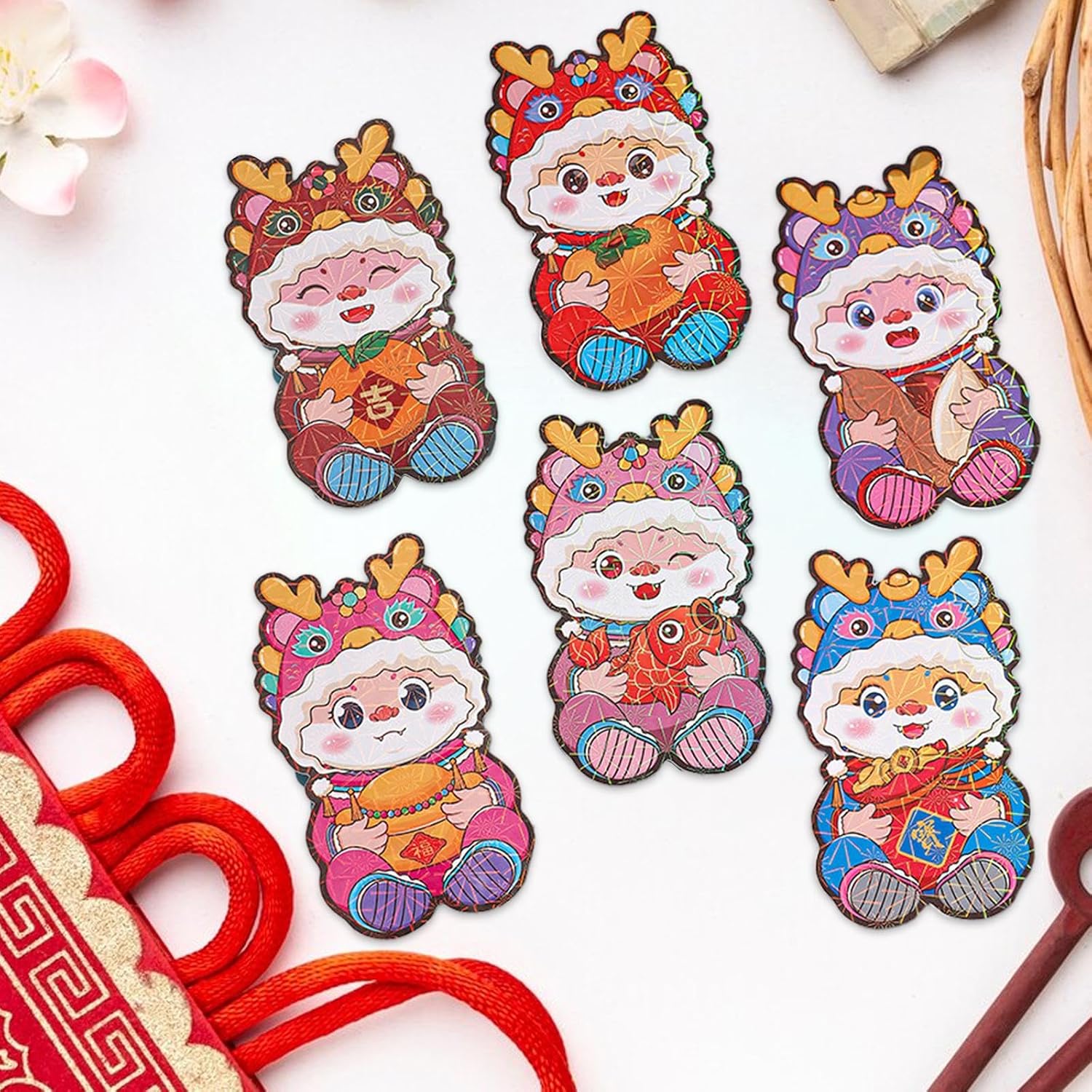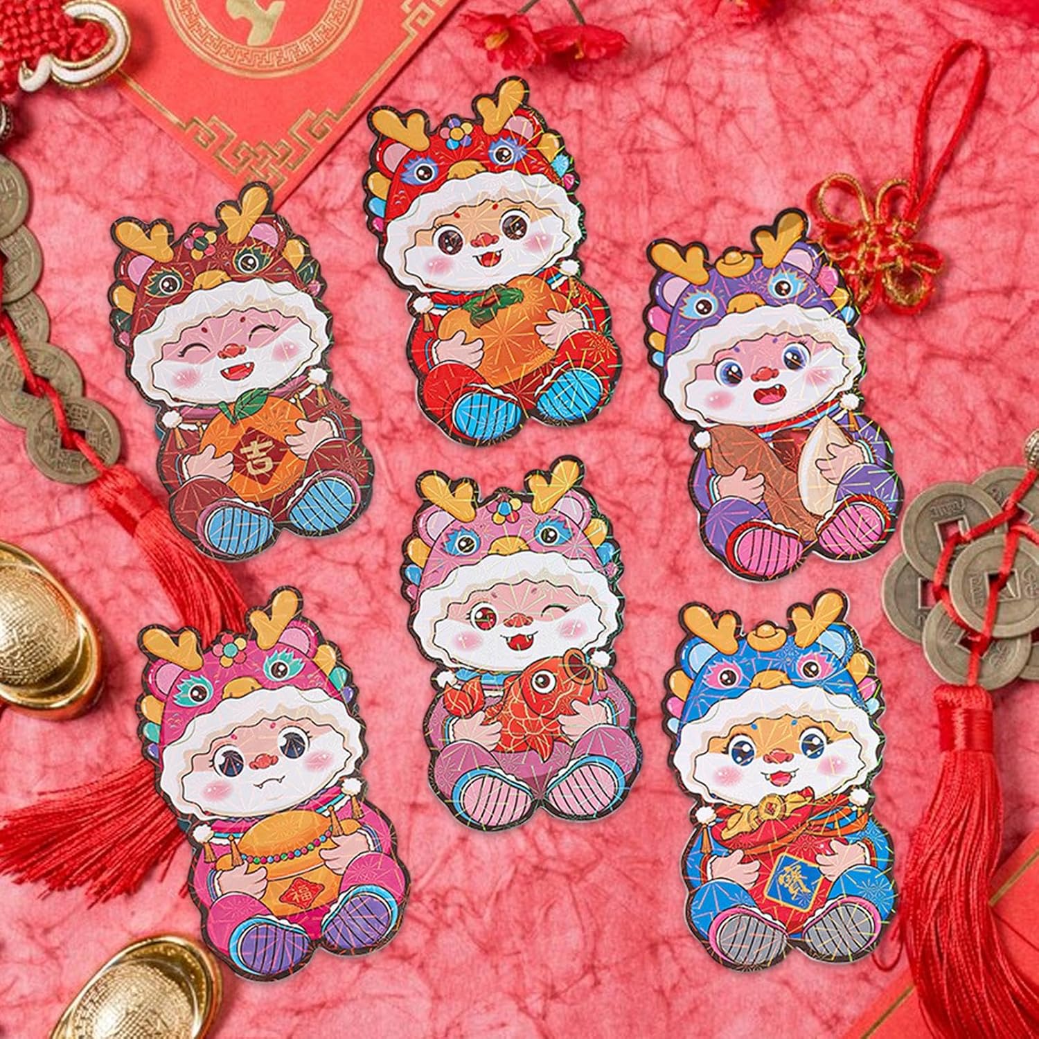 【Alta qualità】: le buste rosse per il Capodanno cinese sono realizzate in carta, resistenti e stabili. Ciascuna tasca porta soldi portafortuna misura 6 cm/2,36 pollici di lunghezza e 15,3 cm/6,02 pollici di altezza, rendendola la dimensione perfetta per contenere denaro o buoni regalo. 【2024 Anno del Drago】: la confezione include 6 adorabili buste rosse a tema drago dei cartoni animati, perfette per l'Anno del Drago. Sono progettati con un effetto 3D unico e creativo, che li rende un modo divertente e festoso per fare regali durante il Capodanno cinese. 【Design speciale】: ricevere buste rosse durante il nuovo anno è un'antica usanza, con il colore rosso che simboleggia auguri e la buona fortuna per il prossimo anno. Queste buste non sono adatte solo per i festeggiamenti di Capodanno, ma sono apprezzate anche per compleanni e matrimoni. 【Tasche di carta festive】: durante il Festival di Primavera, è tradizione che genitori, nonni, parenti e persino amici intimi e regalino soldi in buste rosse alle più giovani. Queste buste rosse sono perfette per continuare questa tradizione. 【Simbolico e significativo】: il colore rosso è un simbolo di fortuna e ricchezza nella cultura cinese, motivo per cui Hong Bao viene utilizzato durante il capodanno cinese e altri eventi celebrativi. Queste buste rosse sono di un rosso e incarnano questi significati di buon auspicio.