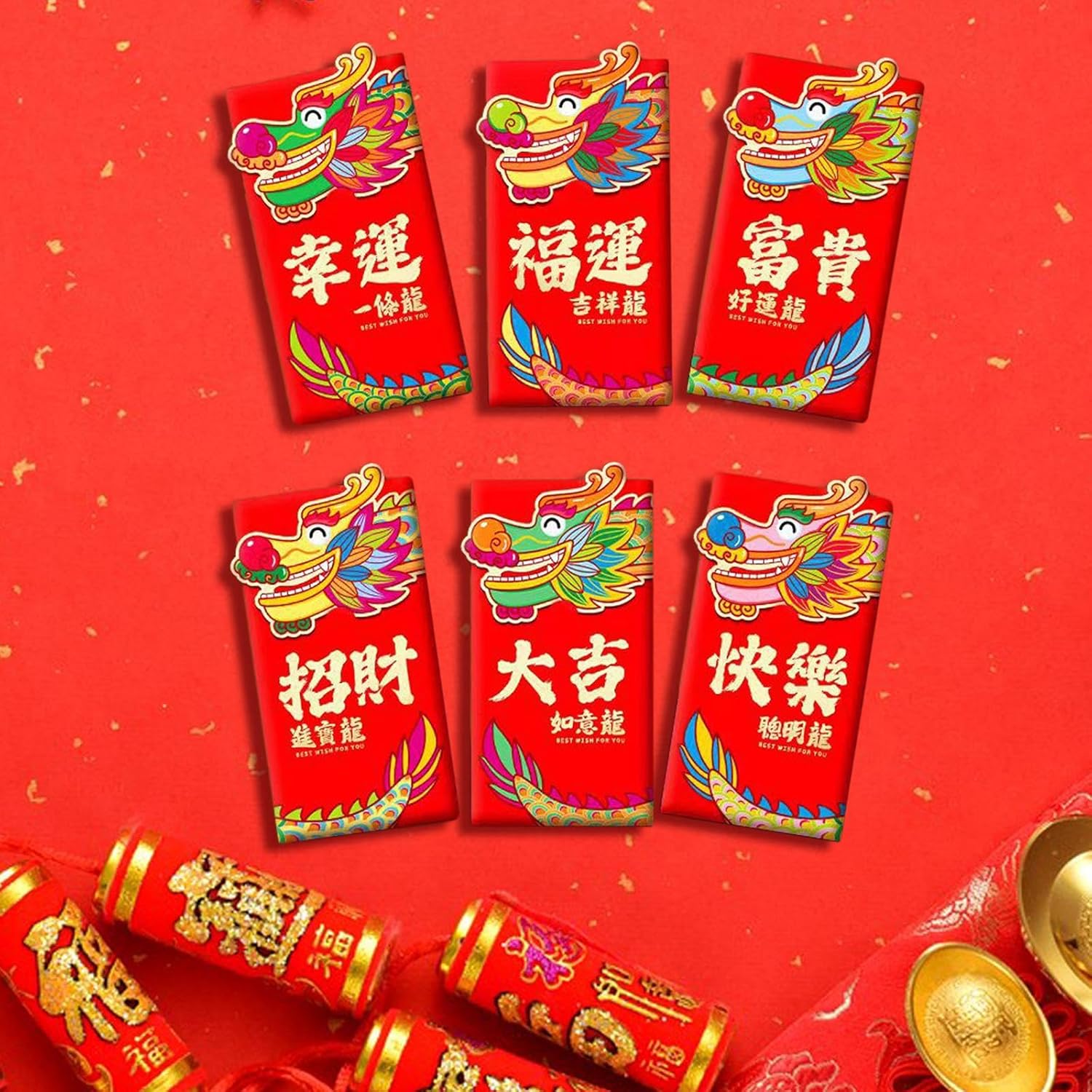 【Capodanno del drago 2024】: il pacchetto include 6 adorabili buste rosse a tema drago dei cartoni animati, perfette per il capodanno cinese. Sono progettati con stile unico e creativo, che li rende un modo divertente e festoso per fare regali durante il capodanno cinese. 【Design speciale】: ricevere buste rosse durante il nuovo anno è un'antica usanza, con il colore rosso che simboleggia auguri e la buona fortuna per il prossimo anno. Queste buste non sono adatte solo per i festeggiamenti di Capodanno, ma sono apprezzate anche per compleanni e matrimoni. 【Tasche di carta festive】: durante il Festival di Primavera, è tradizione che genitori, nonni, parenti e persino amici intimi e regalino soldi in buste rosse alle più giovani. Queste buste rosse sono perfette per continuare questa tradizione. 【Alta qualità】: le buste rosse per il Capodanno cinese sono realizzate in carta, resistenti e stabili. Ogni tasca portasoldi misura 9 cm x 17 cm, il che la rende la dimensione perfetta per contenere denaro o buoni regalo. 【Simbolico e significativo】: il colore rosso è un simbolo di fortuna e ricchezza nella cultura cinese, motivo per cui Hong Bao viene utilizzato durante il capodanno cinese e altri eventi celebrativi. Queste buste rosse sono di un rosso e incarnano questi significati di buon auspicio.