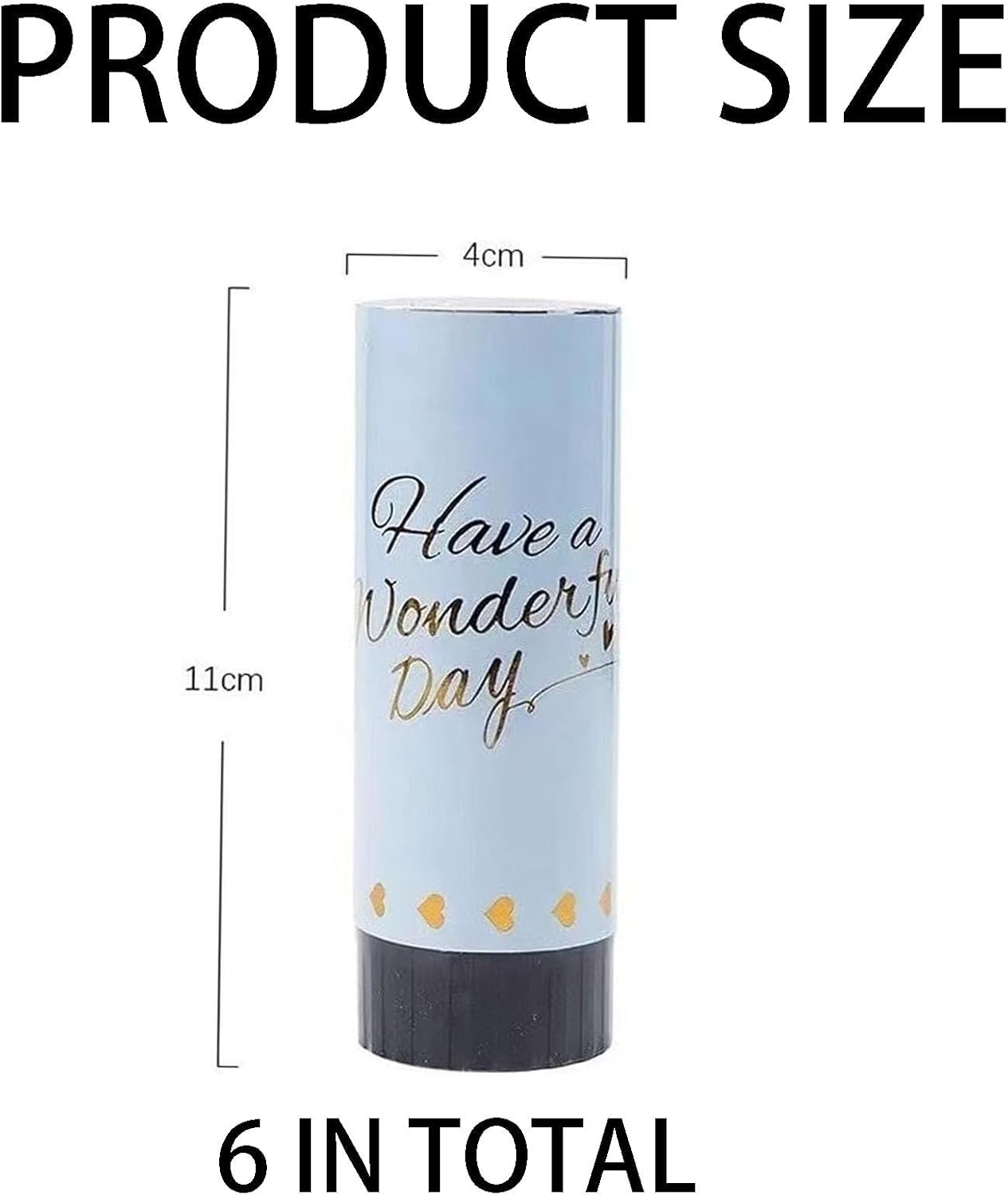 +Ocean Blue Color: Aggiungi un tocco di eleganza e raffinatezza alla tua occasione speciale con i nostri coriandoli bianchi in blu oceano. Il vivace colore blu crea un effetto visivo ipnotico e crea lo sfondo perfetto per feste di laurea, sposa, anniversario e Capodanno. + Coriandoli di alta qualità: i nostri coriandoli sono realizzati con materiali di alta qualità, i cannoni di coriandoli blu possono produrre il bellissimo effetto dei coriandoli. Durerà per alcuni secondi. Facile da usare e pulire: il nostro design colorato con coriandoli. Hai solo bisogno di ruotare il giradischi nella direzione della freccia a forma di cuore nella parte inferiore, basta ruotare e pop per rilasciare un'esplosione di coriandoli nell'aria, creando un momento magico. Versatili: i nostri coriandoli da matrimonio sono progettati per una maggiore facilità d'uso. Che tu stia festeggiando all'interno o all'aperto, i nostri coriandoli porteranno gioia ed eccitazione a qualsiasi evento. +Fashion Party Essential: hai ricevuto 6 confezioni di bastoncini di coriandoli, lunghi 11 centimetri. I coriandoli blu emettono abbaglianti coriandoli blu, aggiungendo elementi mozzafiato a qualsiasi evento di celebrazione. Che si tratti di un matrimonio, cerimonia di laurea, addio al nubilato, anniversario o festa di Capodanno, questi coriandoli creeranno un momento magico che i tuoi ospiti non dimenticheranno mai.