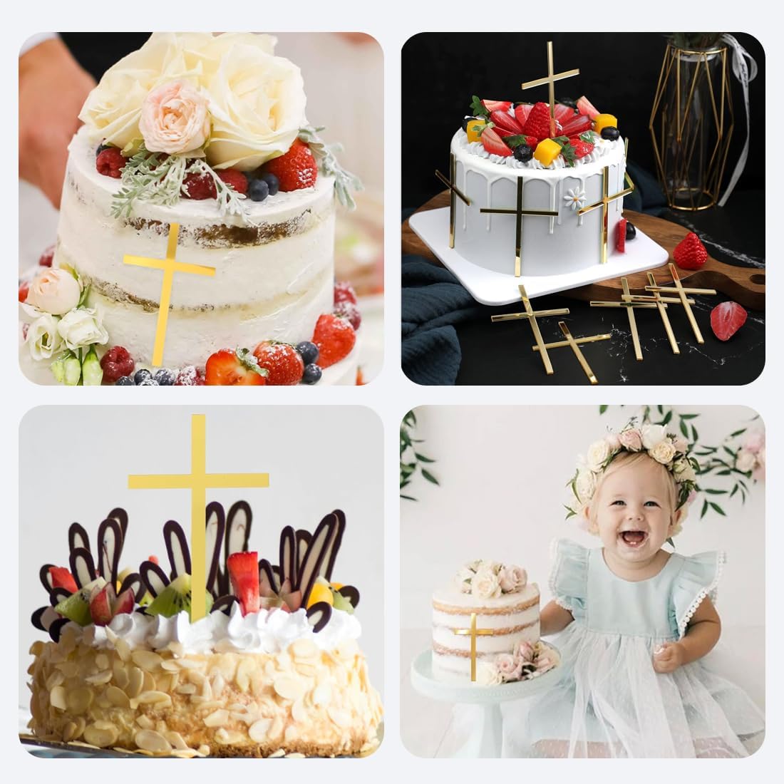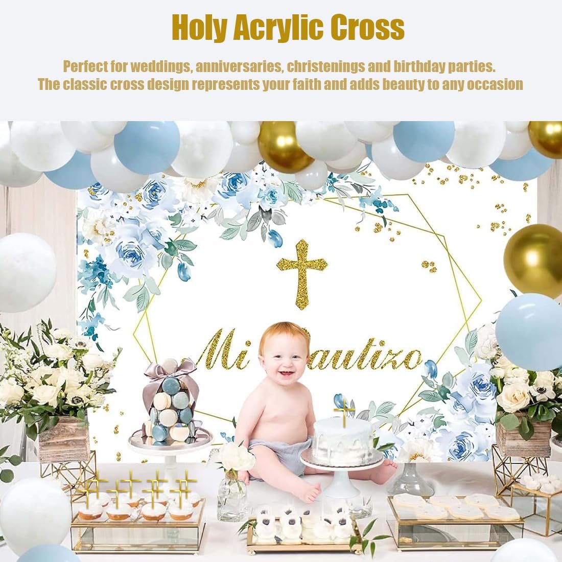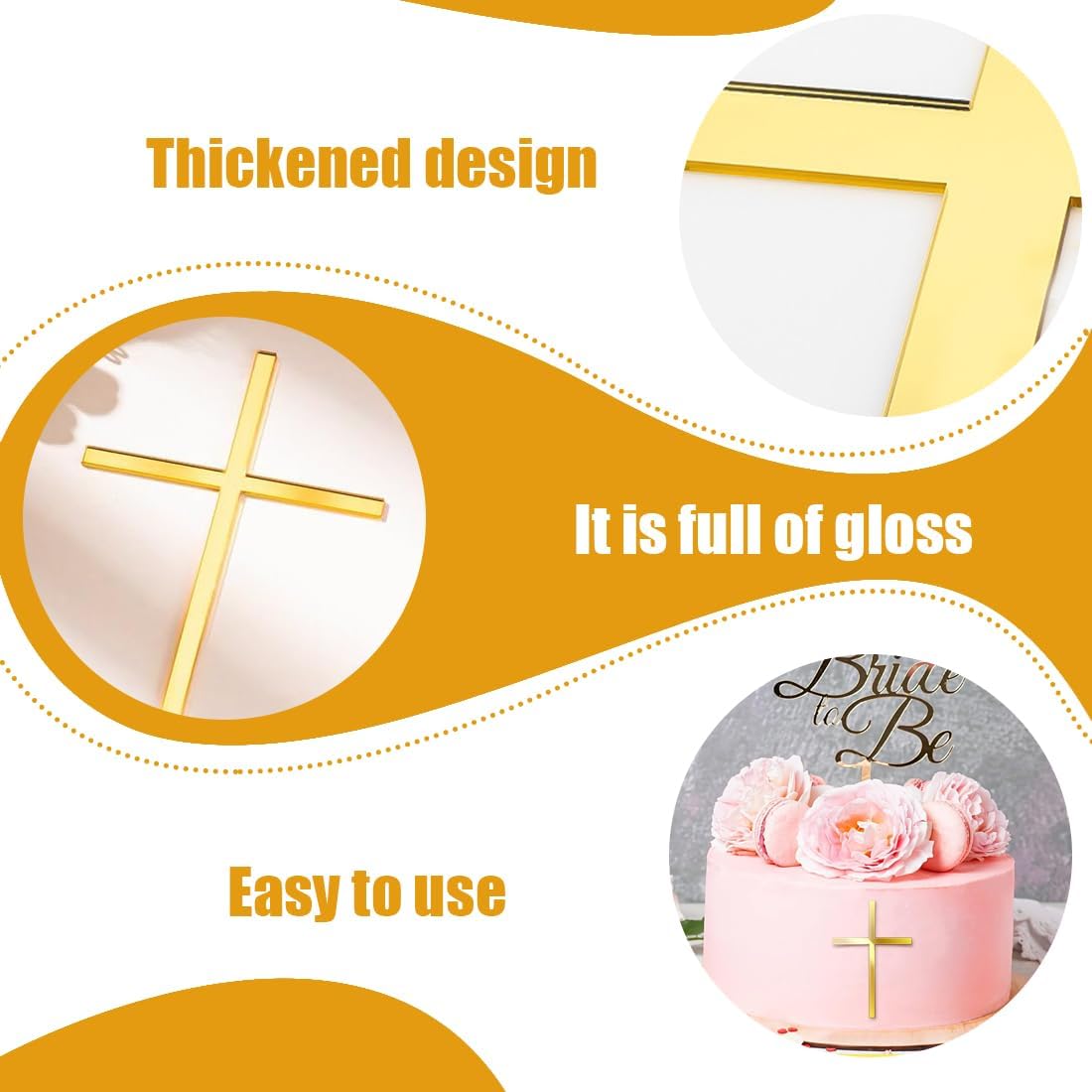 Questa confezione da 6 cake topper presenta un elegante design a forma di croce ed è realizzata in acrilico di alta qualità, ideale per decorazioni festive per comunioni, cresime e battesimi. L'elegante colore oro aggiunge un tocco di eleganza alle torte sia per bambine che per bambini, perfette per qualsiasi celebrazione. Le dimensioni compatte e la chiusura robusta garantiscono un facile fissaggio senza scivolare sulla torta. Riutilizzabili e facili da pulire, perfetti per feste e celebrazioni frequenti. Versatile per matrimoni, compleanni, feste e altre occasioni festive, questi cake topper sono perfetti come decorazioni speciali per torte.